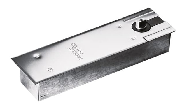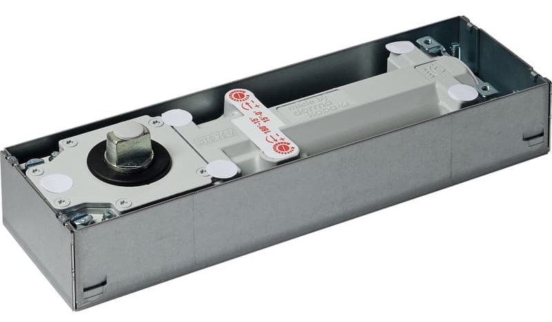 | Plus produit | Pivot de sol encastré réversible pour portes jusqu’à 1100 mm et 120 kg, frein mécanique à l’ouverture, réglages hydrauliques de fermeture, circuit thermo-constant -15° à +40°, force réglable 1–4 (10–30 Nm), livré avec boîte de scellement, compact et robuste. |