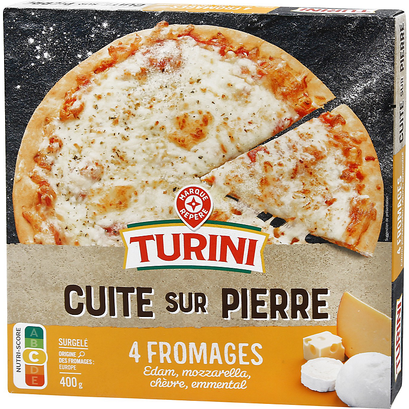 PIZZA À BASE D'ÉDAM, MOZZARELLA, FROMAGE DE CHÈVRE ET EMMENTAL - SURGELÉE TURINI