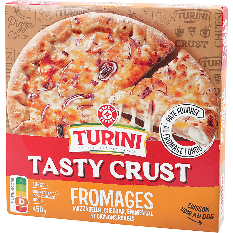 PIZZA À BASE DE MOZZARELLA, CHEDDAR ET EMMENTAL AVEC UNE PÂTE AUX BORDS FOURRÉS AU FROMAGE FONDU - SURGELEE TURINI