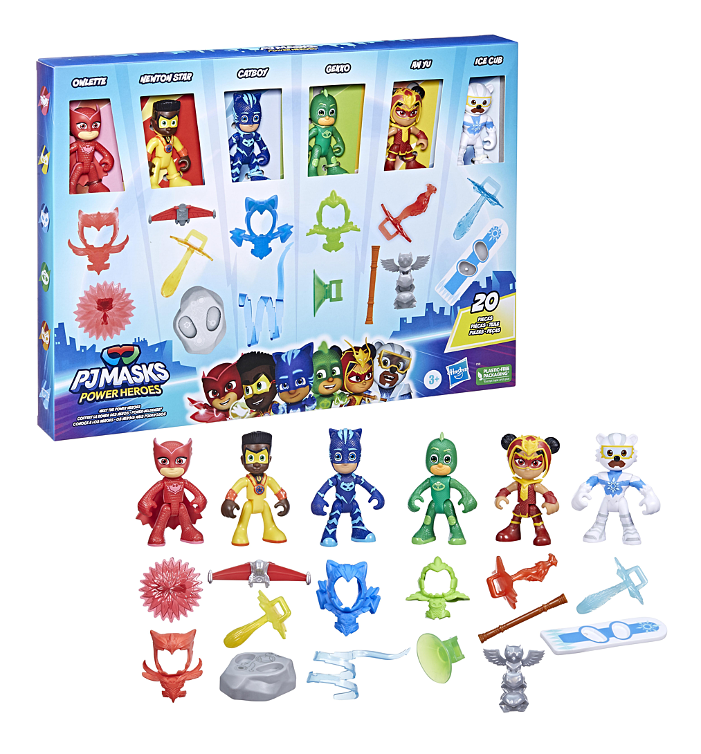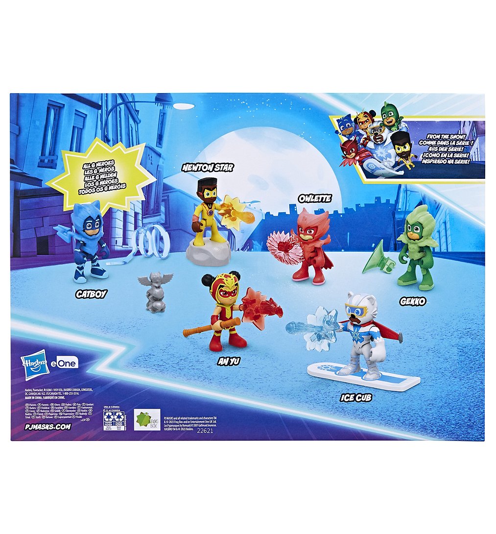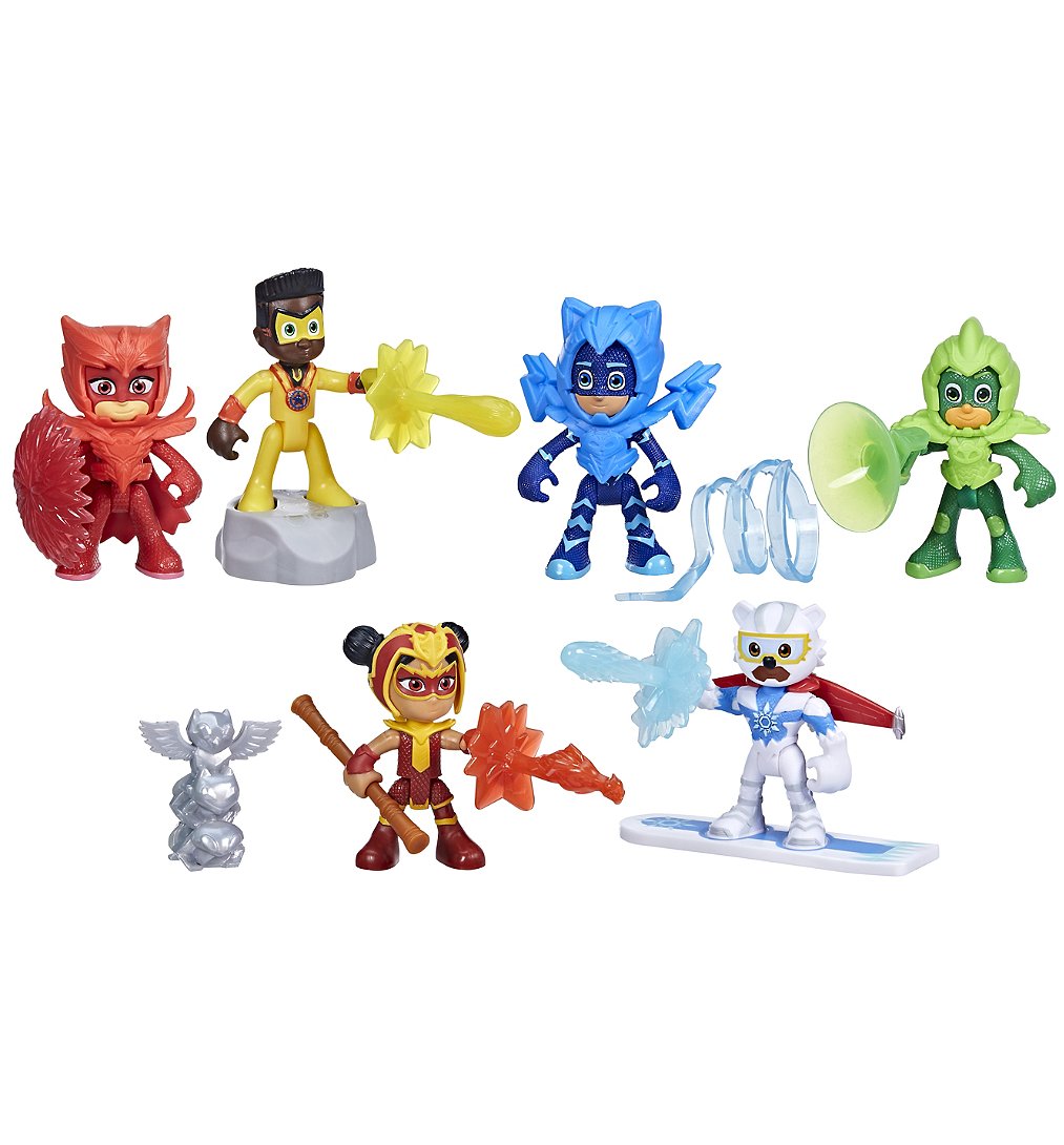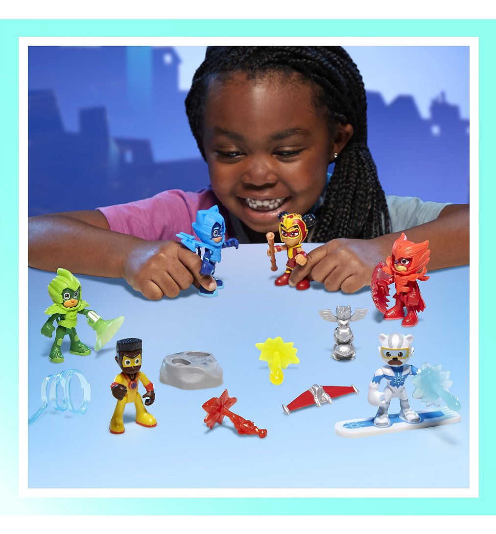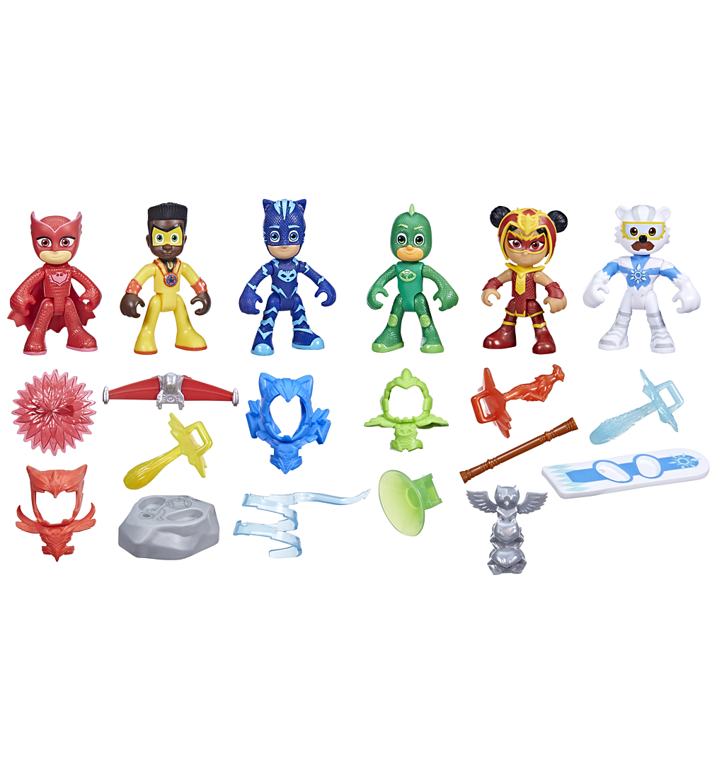 COLLECTION PYJAMASQUES LA RONDE DES HÉROS : Le Coffret La Ronde des Héros inclut toute l'équipe de héros, avec 6 figurines articulées Pyjamasques 7,5 cm et 14 accessoires