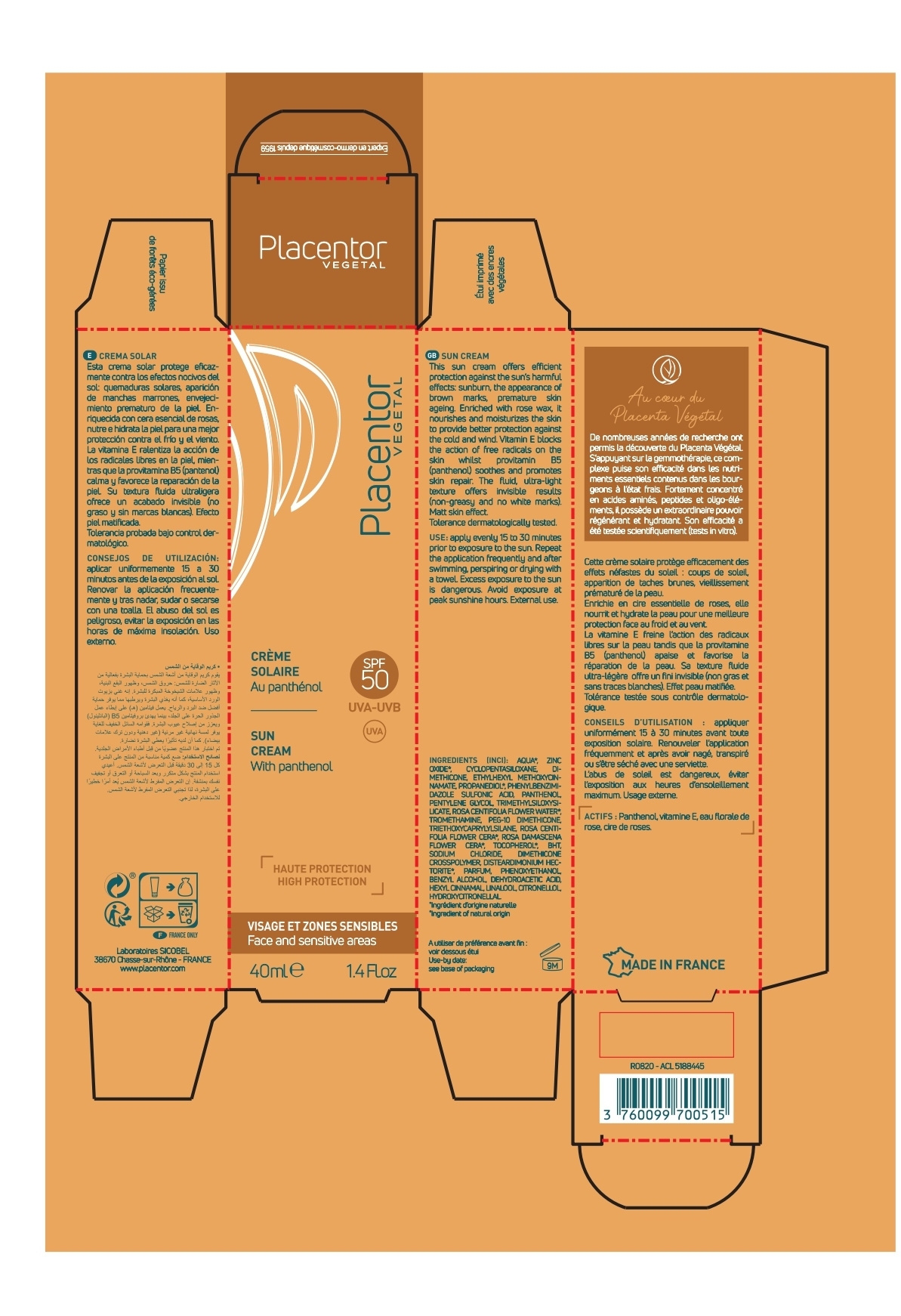 Libellé Placentor Crème solaire très haute protection SPF 50+ tube 40 ml