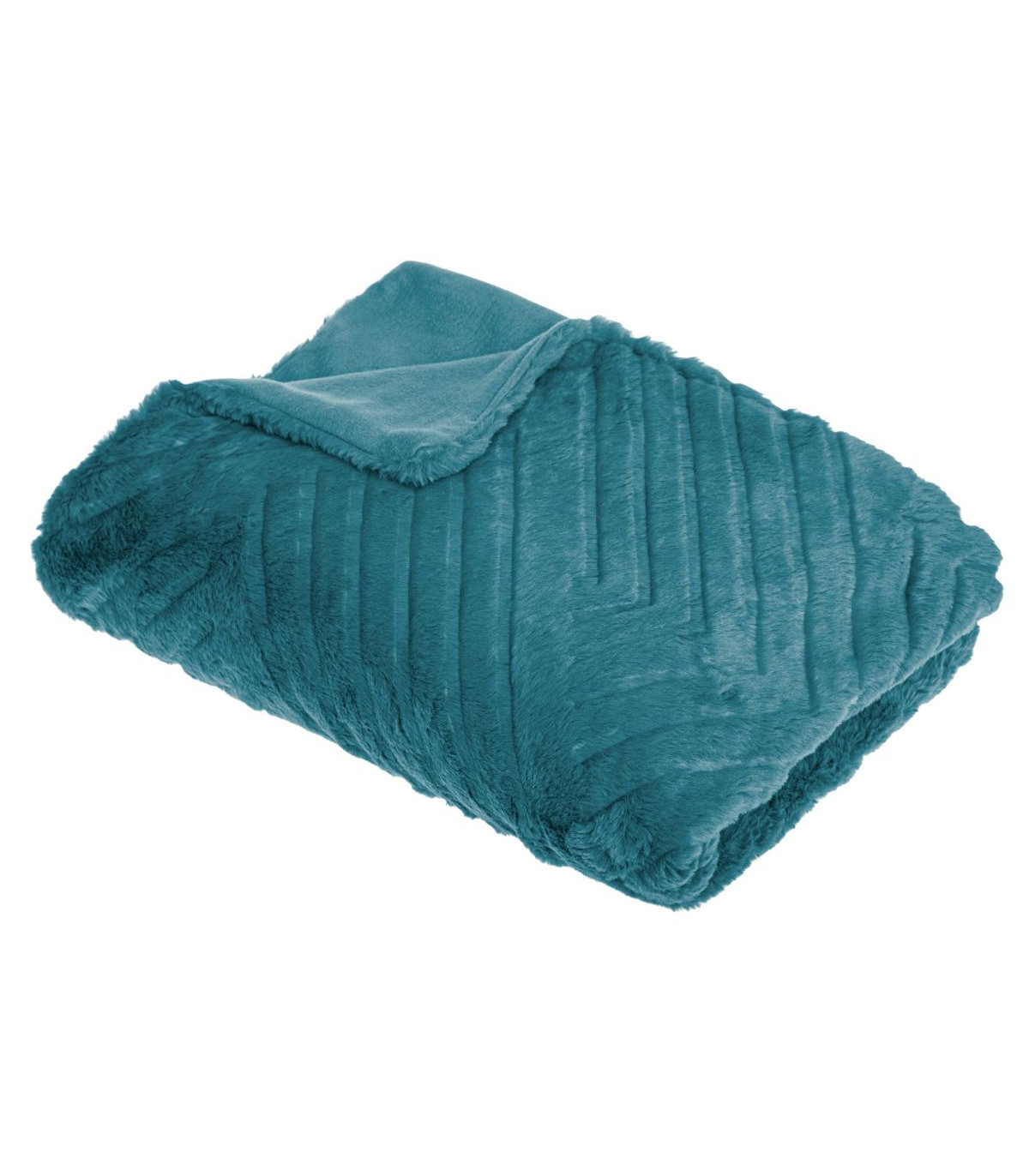 Plaid en Fourrure Bleu Canard motif en relief 120 x 160 cm --