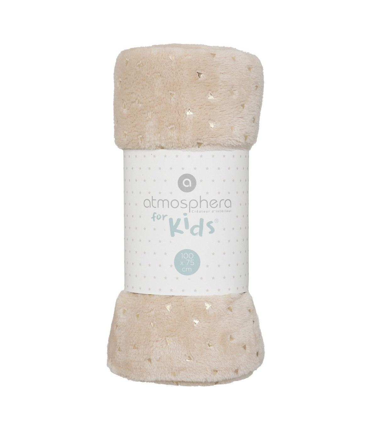 Plaid Enfant en Flanelle Beige motif doré 75 x 100 cm