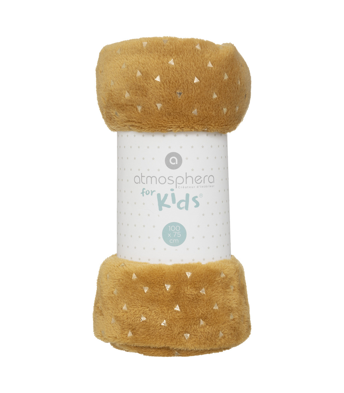 Plaid Enfant en Flanelle Ocre motif doré 75 x 100 cm --