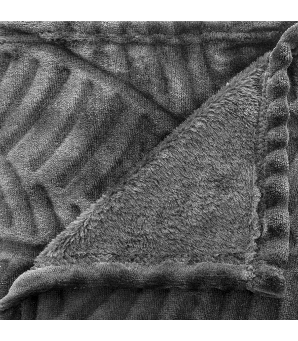Plaid Gris motif Feuille en relief 125 x 150 cm --