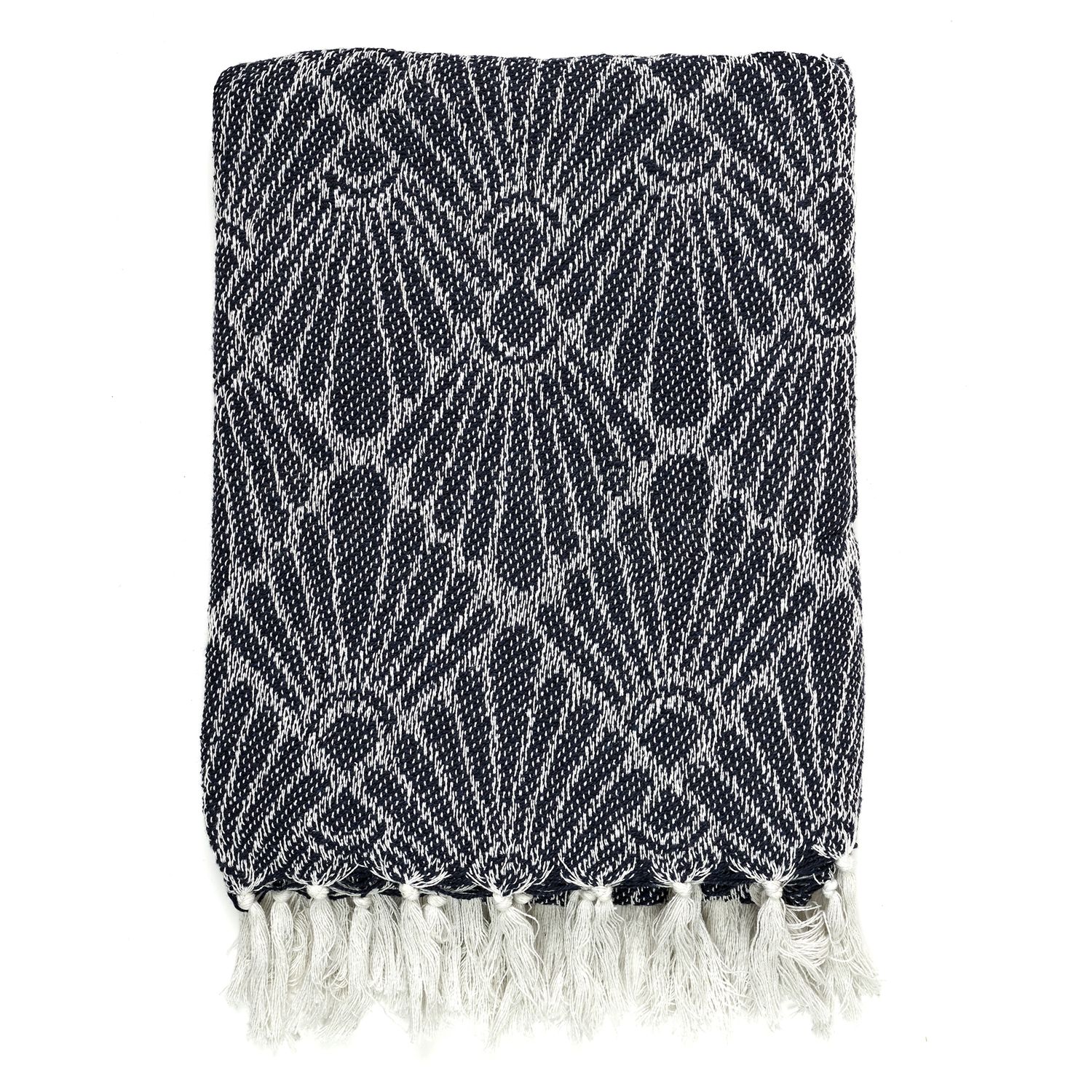 Réhaussez votre intérieur grâce à ce doux plaid jacquard bleu marine aux motifs géométriques.