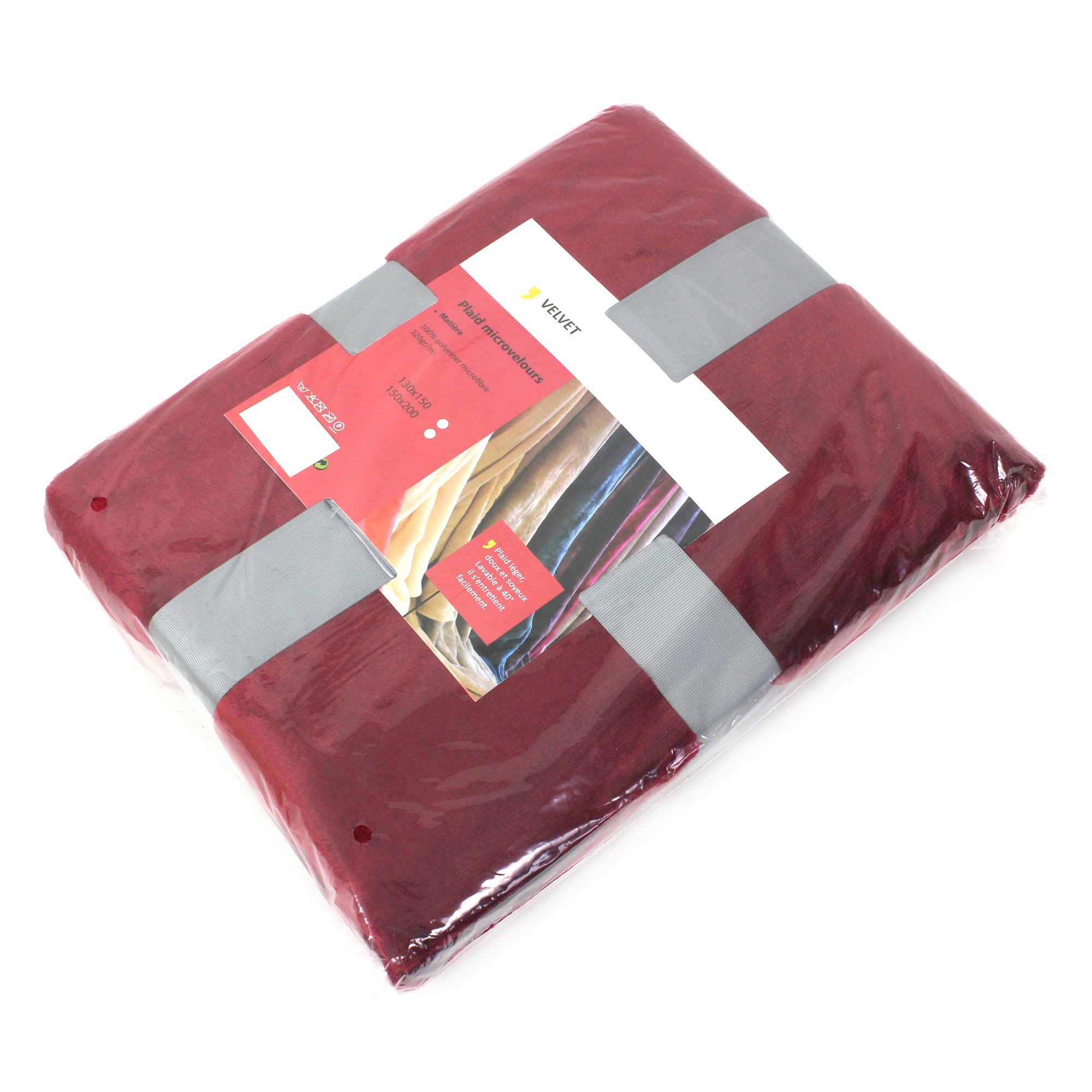 Plaid polaire microvelours 130x150 cm VELVET Bourgogne Rouge 100% Polyester 320 g/m2 Traitement non-feu 1