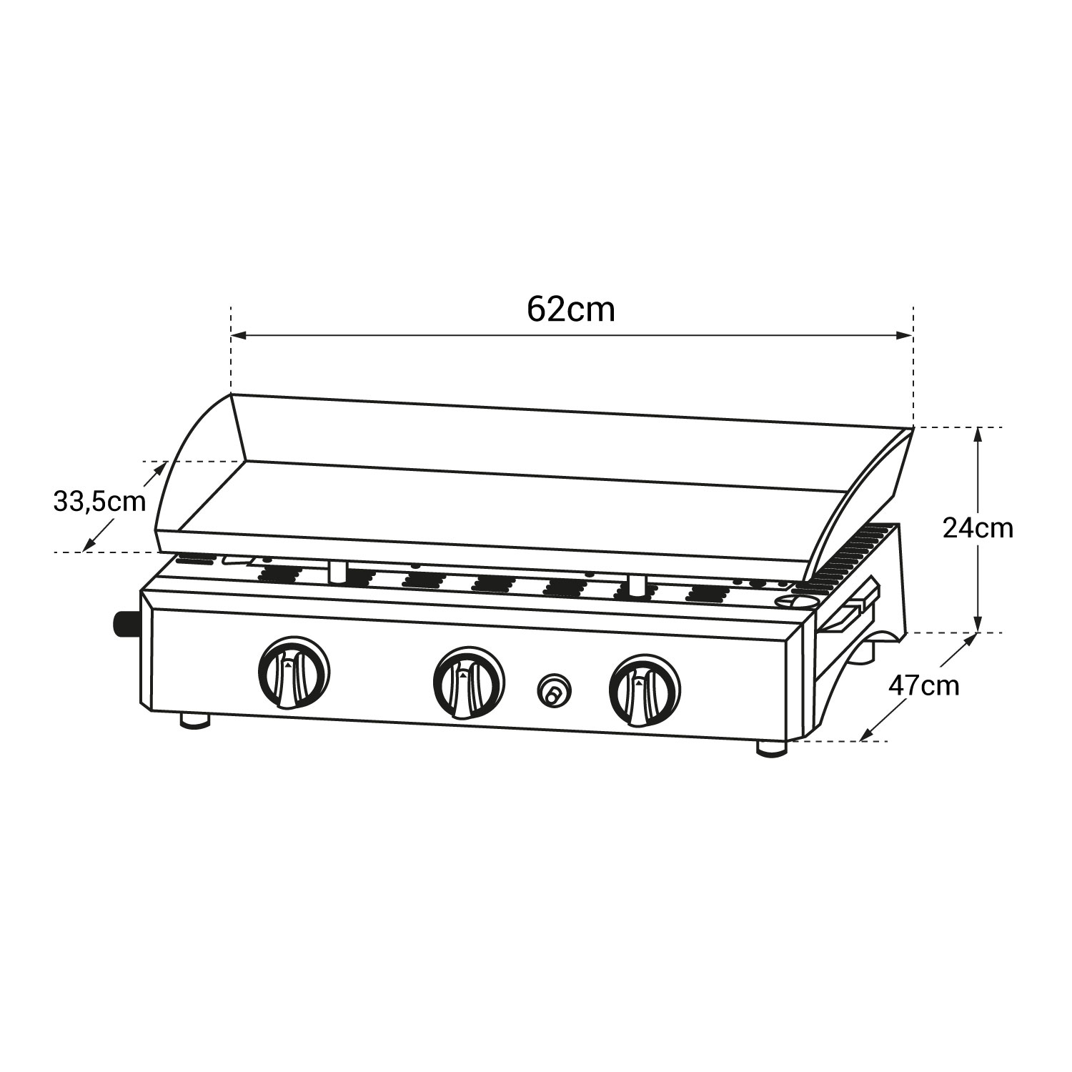 - Plancha : L 62 × l 47 × H 24cm
