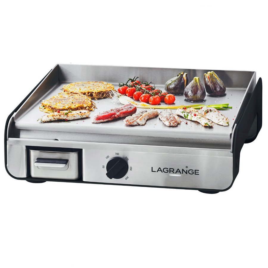 219152 - plancha électrique 2300w 45x33cm - Plancha électrique Plancha Pro Lagrange 219152 : La plancha semi-professionnelle performante et lookée ! Produit conçu et assemblé en France. Hautes performances de cuisson : montée en température rapide lui permettant d'égaler les performances d'une plancha gaz et thermostat réglable de 50°C à 300°C pour une cuisson de précision. Produit fiable et robuste : Produit fabriqué en France avec des matériaux rigoureusement sélectionnés, cette plancha résiste aux intempéries (IPX4) et promet une grande durabilité (garantie 10 ans sur la plaque). Ergonomique et facile d'utilisation : possibilité de pousser les aliments directement dans l'assiette ou le plat de service. Astucieux : 4 pieds réglables pour incliner la plaque afin de s'adapter au type de cuisson souhaité (évacuation des graisses en relevant l'arrière ou cuisson dans son jus en relevant l'avant).
