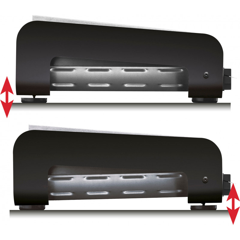 Autre(s) : 4 pieds réglables pour incliner la plaque, Témoin de température atteinte (blanc) et de chauffe (rouge), Rebord anti-projections sur 3 côtés.