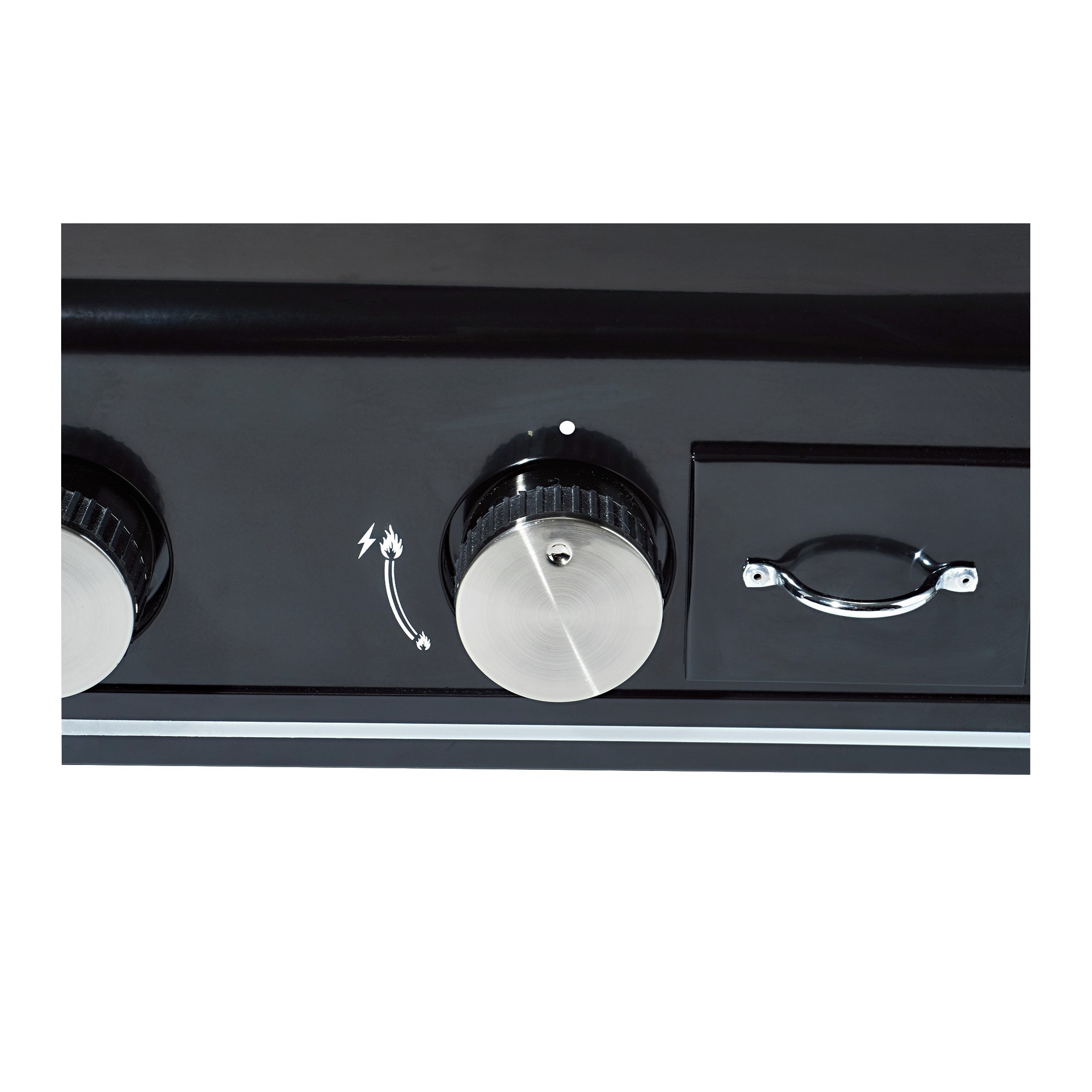 Puissance : 7,5 kW. Plaque en fonte émaillée. Surface de cuisson : L. 63 x l.42cm env. Dim : L. 66 x l. 52 x H. 27 cm env. Avec récupérateur de graisse et système d'allumage Piezo intégré aux boutons.
