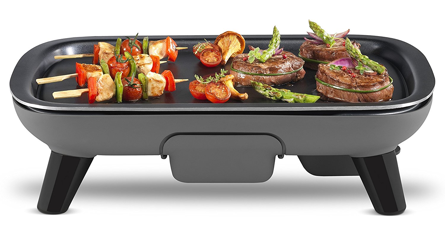 Une plancha puissante pour une cuisine facile Une plancha puissante pour des instants gourmands et des grillades en toutes saisons. Grâce à son thermostat réglable et à la technologie Thermo-Spot, il n’a jamais été aussi facile de s’adapter à toutes les exigences de cuisson. Avec ses 2400 watts, sa plaque anti-adhésive compatible lave-vaisselle et son bac récepteur de graisse, la Plancha des Saveurs vous garantit des grillades réussies. Plancha design pour faire le tour du monde des saveurs ! Sa plaque moulée avec Thermo-spot ainsi que son thermostat, vous permettra de cuire parfaitement légumes, poissons, crustacés, viandes… Ingénieuse, elle vous offrira en plus un nettoyage facile grâce à sa plaque amovible passant au lave vaisselle ! PERFORMANCE : - Une grande qualité de cuisson : Une puissance de 2400W pour saisir parfaitement même les plus grosses pièces de viande. - Une surface de cuisson familiale pour 6 personnes. - Revêtement antiadhésif et indicateur Thermo-Spot® qui indique la température idéale de cuisson. - Thermostat multi-position pour maitriser toutes vos cuissons jusqu'à 265°. - Large bac de récupération des jus. PRATICITE : - Nettoyage facile. - La plaque et le bac à jus amovibles se glissent dans le lave-vaisselle. DESIGN : - Design moderne. - Finition soignée. Brève description sommaire Tefal CB657B01 barbecue et grill 2400 W Electrique Dessus de table Noir, Gris: Tefal CB657B01, 2400 W, Grill, Electrique, 1 zone(s), 1000 cm², 6 personne(s)