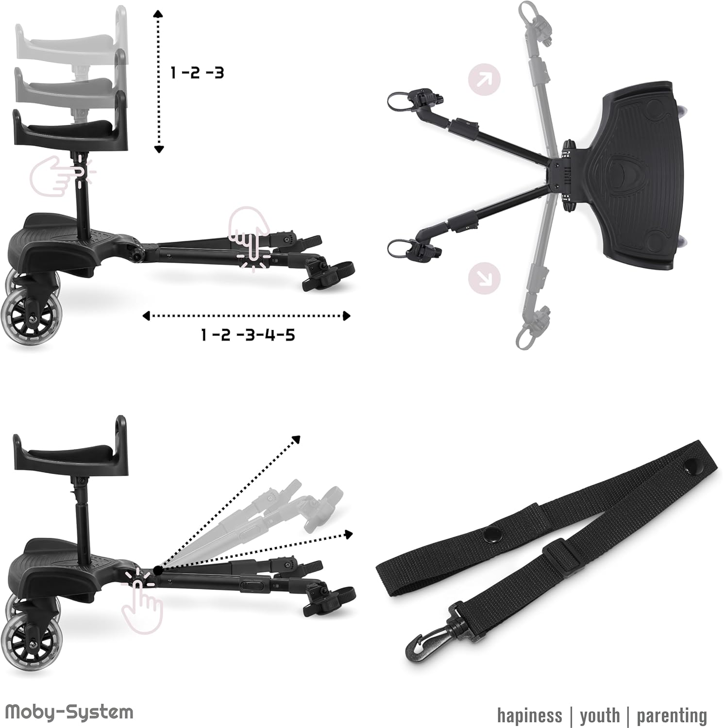 Planche à Roulette Poussette Universelle, Poussette Supplémentaire Enfant 2-5 ans, Siège Réglable, Poigné