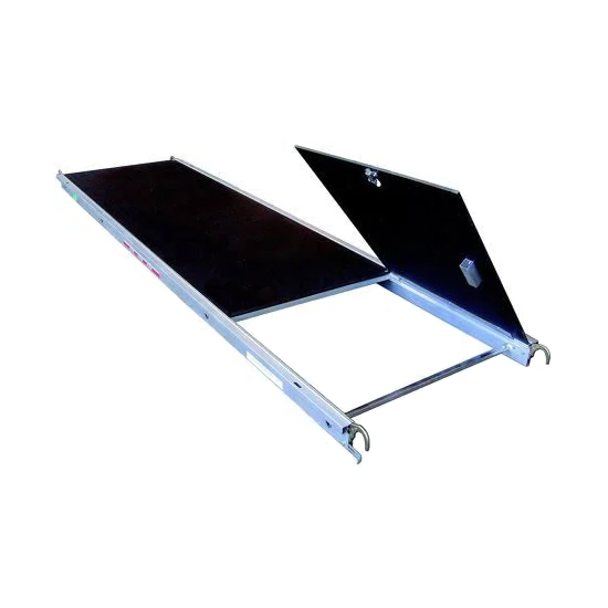 Le plancher alu/bois 3 x 0,85 m avec trappe, est un élément de la gamme d'échafaudages de Maçon.
