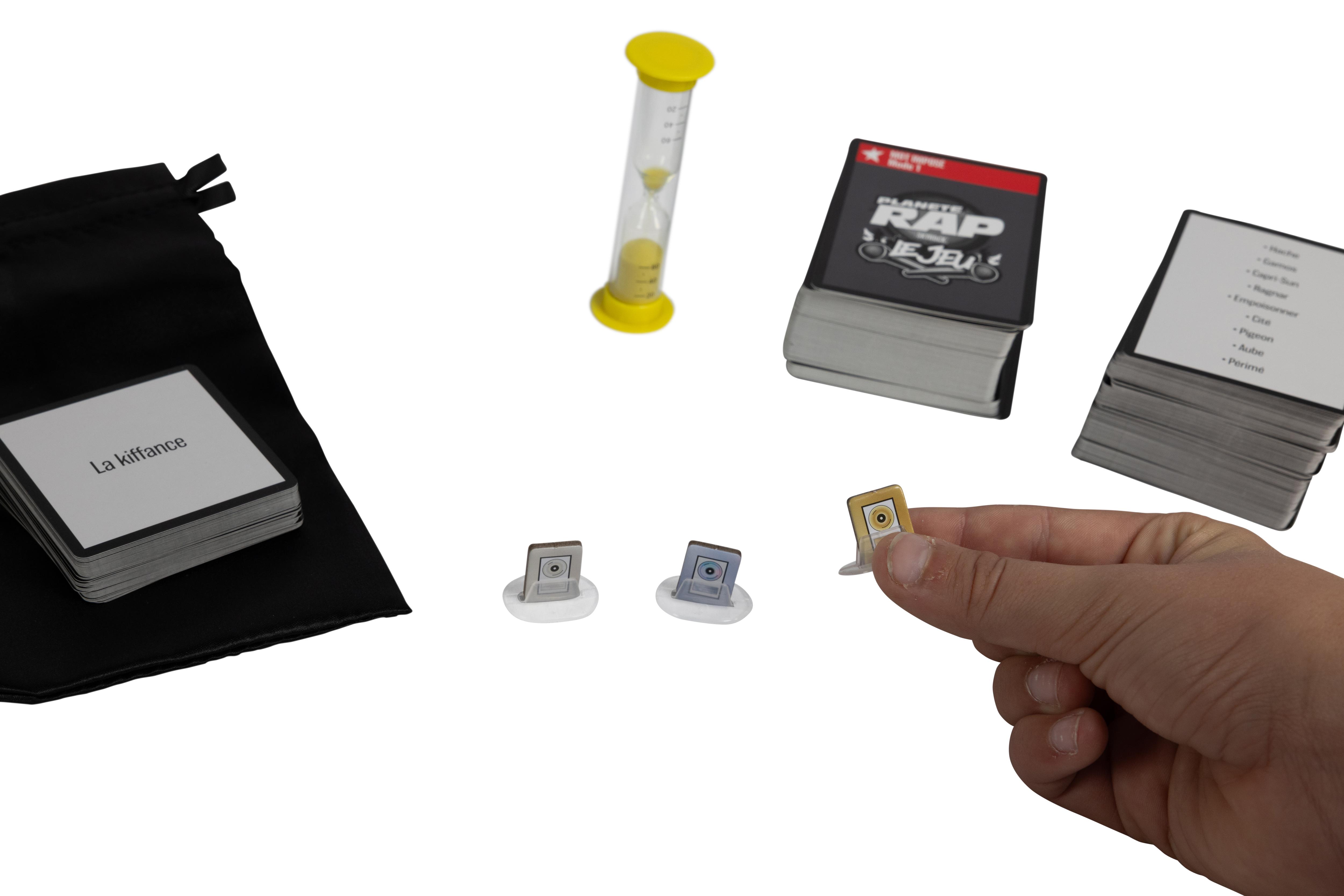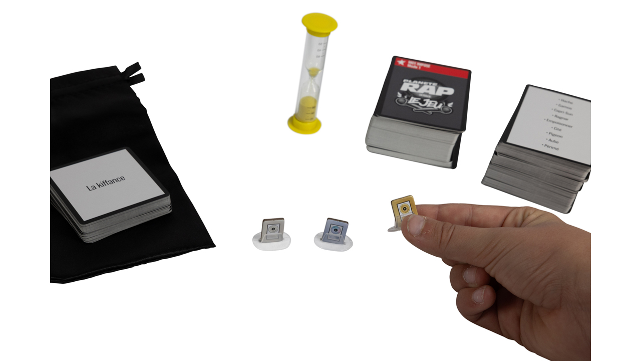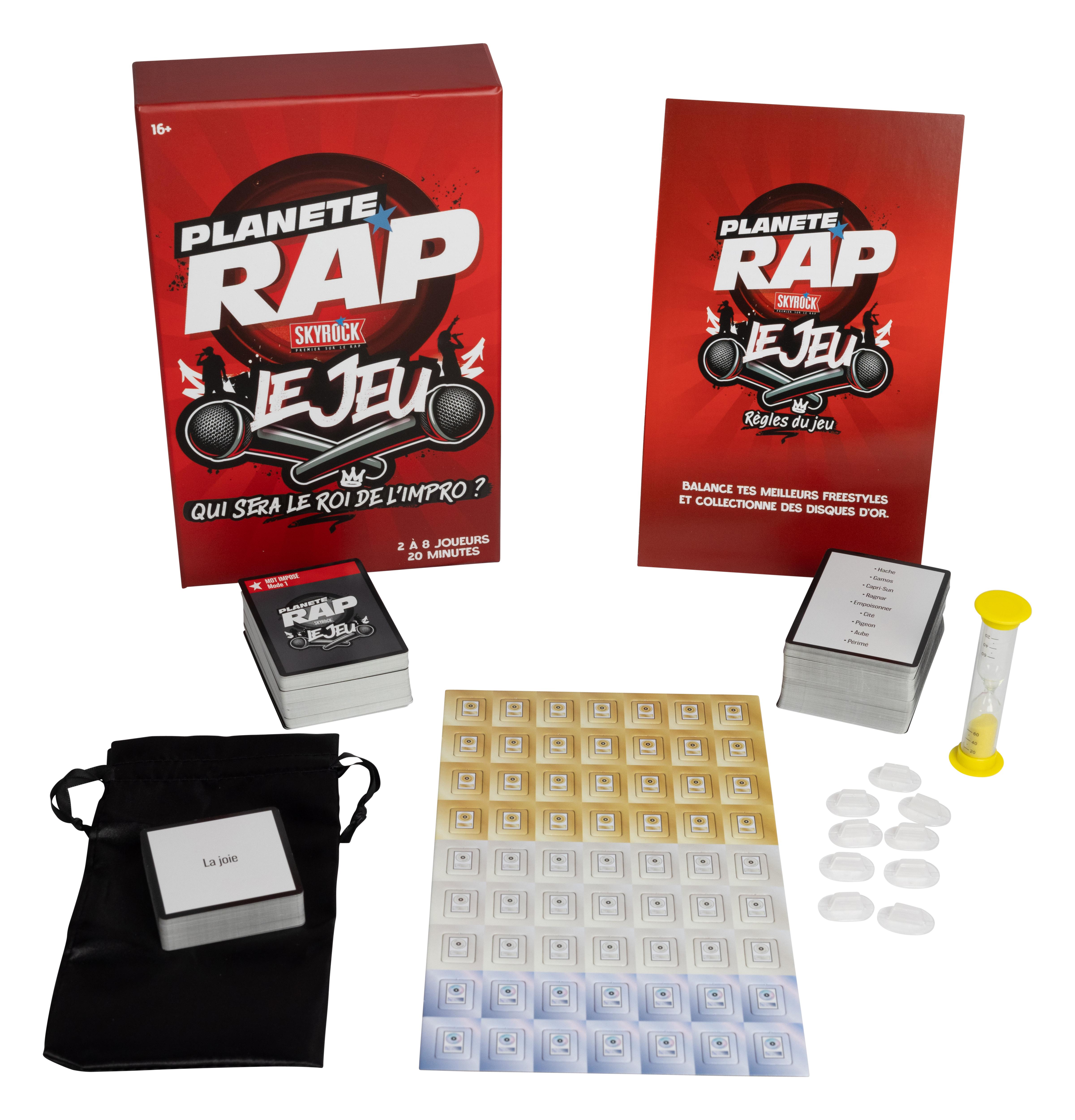 Qui sera la nouvelle pépite du rap ? Avec tes potes ou en famille, c’est le moment de voir ce que t’as dans le ventre ! Ecris ton freestyle, choisis ton instru, et c’est parti ! Pour gagner il faut rapper en utilisant les mots imposés sur les cartes, faire des rimes et respecter les thématiques et les émotions. En fonction de tes performances, tu accumules des disques d’or et tu progresses dans la partie. Le premier qui atteint le disque de diamant a gagné ! Et comment parler de rap sans évoquer les battles ? Avec le jeu Planète Rap tu peux clasher un autre joueur et le défier dans un battle sans merci ! Donne tout ce que t’as et balance tes meilleures punchlines, la prochaine pépite du rap c’est toi !
