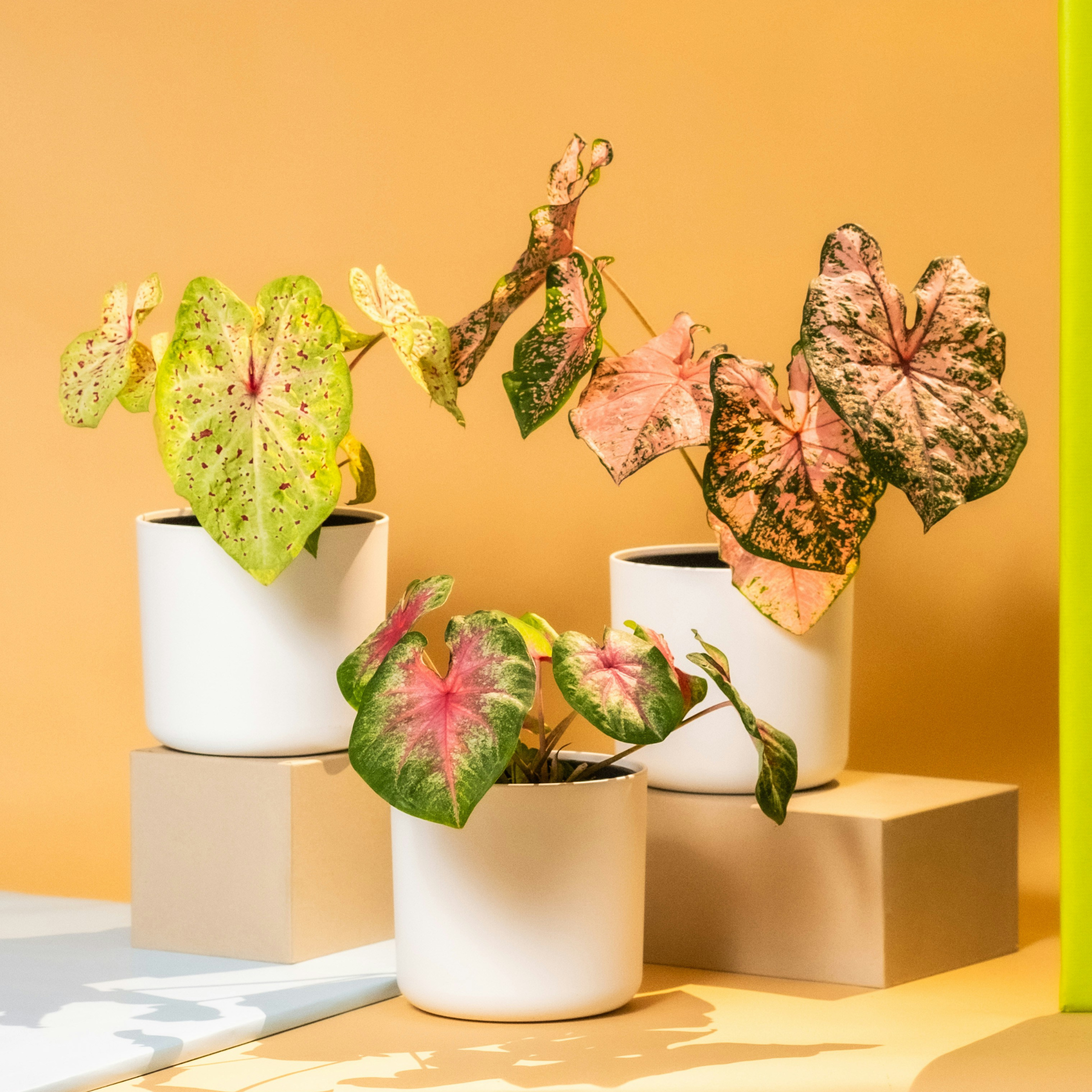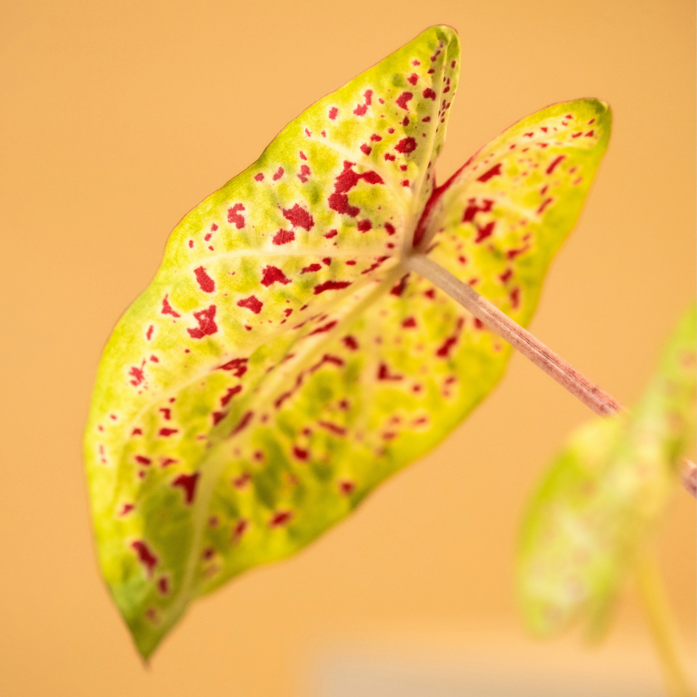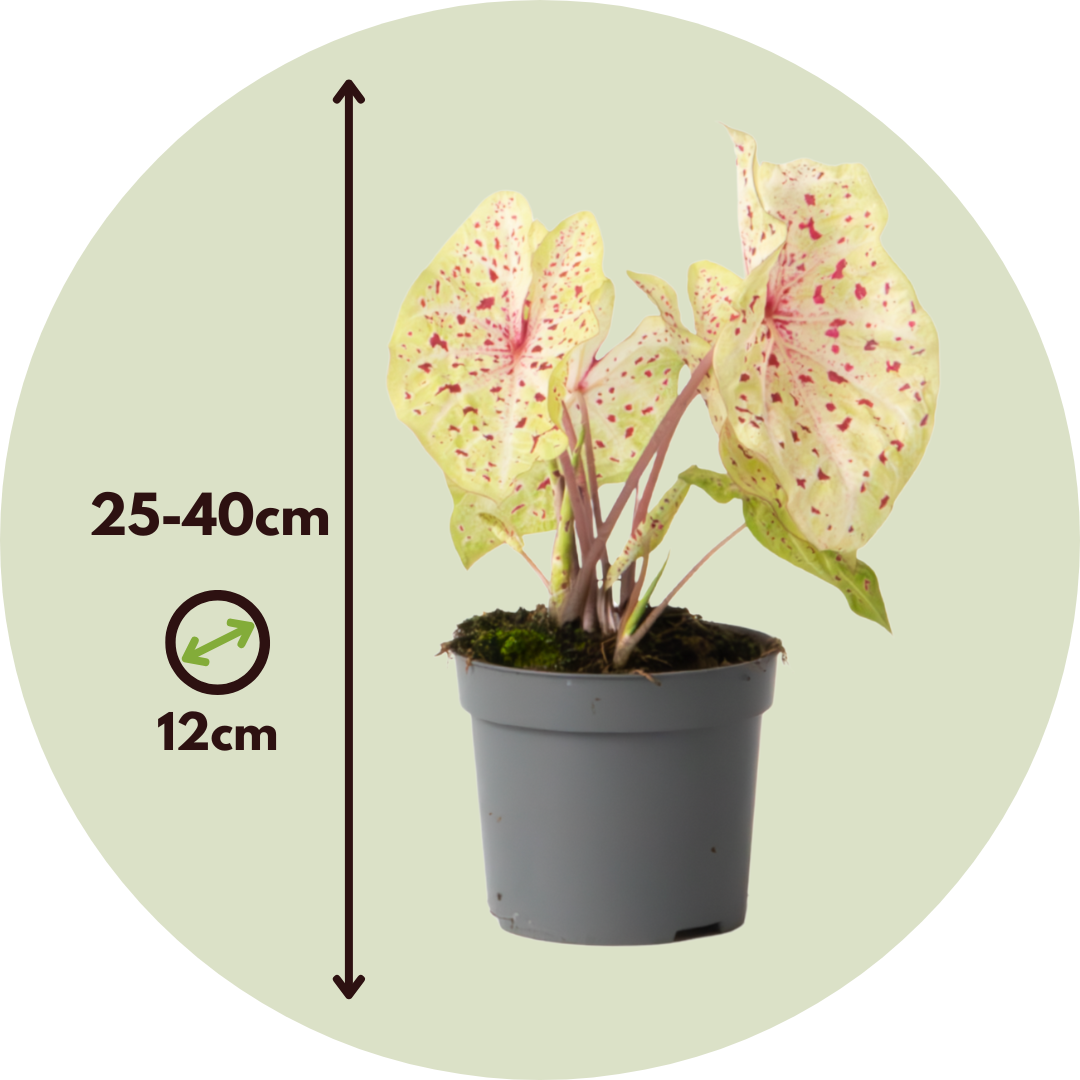 Le Caladium préfère une température supérieure à 15 degrés. Elle peut sortir en été, mais il est important qu’elle ne soit pas exposée directement au soleil car cela pourrait brûler la plante. La plante a besoin d'être arrosée une fois toutes les 2 semaines en été. Assurez-vous de garder le sol humide. Les feuilles tombent ? La plante a alors besoin d’un peu plus d’eau. Au printemps et en été, la plante a besoin d'être nourrie chaque mois, ce qui garantit une bonne croissance. Attention, le Caladium est toxique.