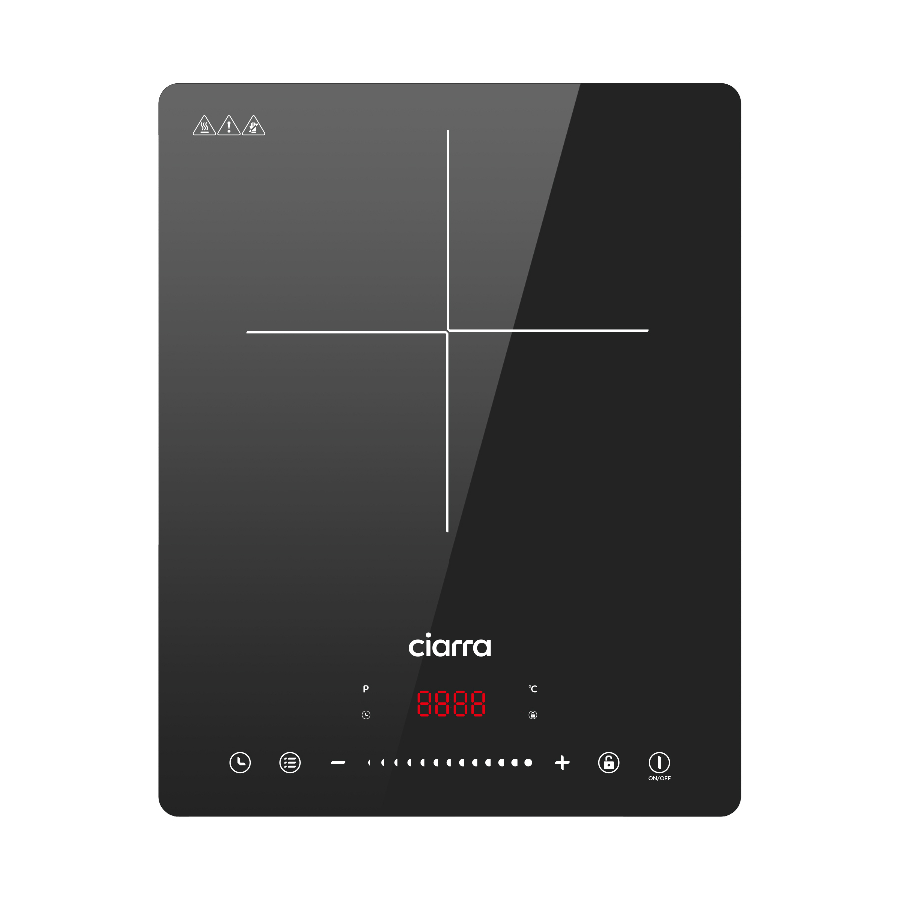 CIARRA Table Induction avec 1 foyer, cuisson plus vite et avec plus de précision que plaque à vitrocéramique. Simple à utiliser par commandes sensitives et témoins en LCD, vous constaterez facilement le process de cuisson.