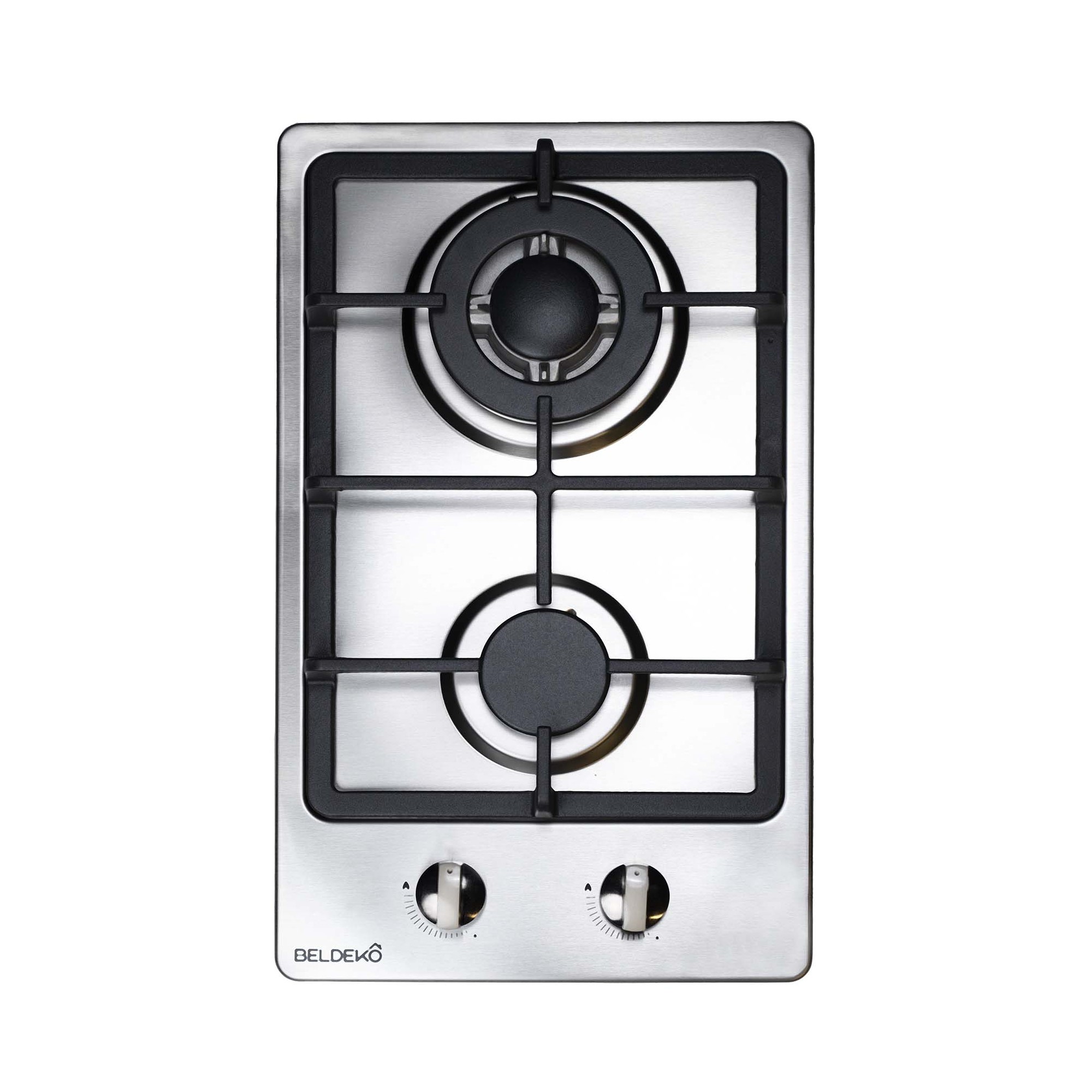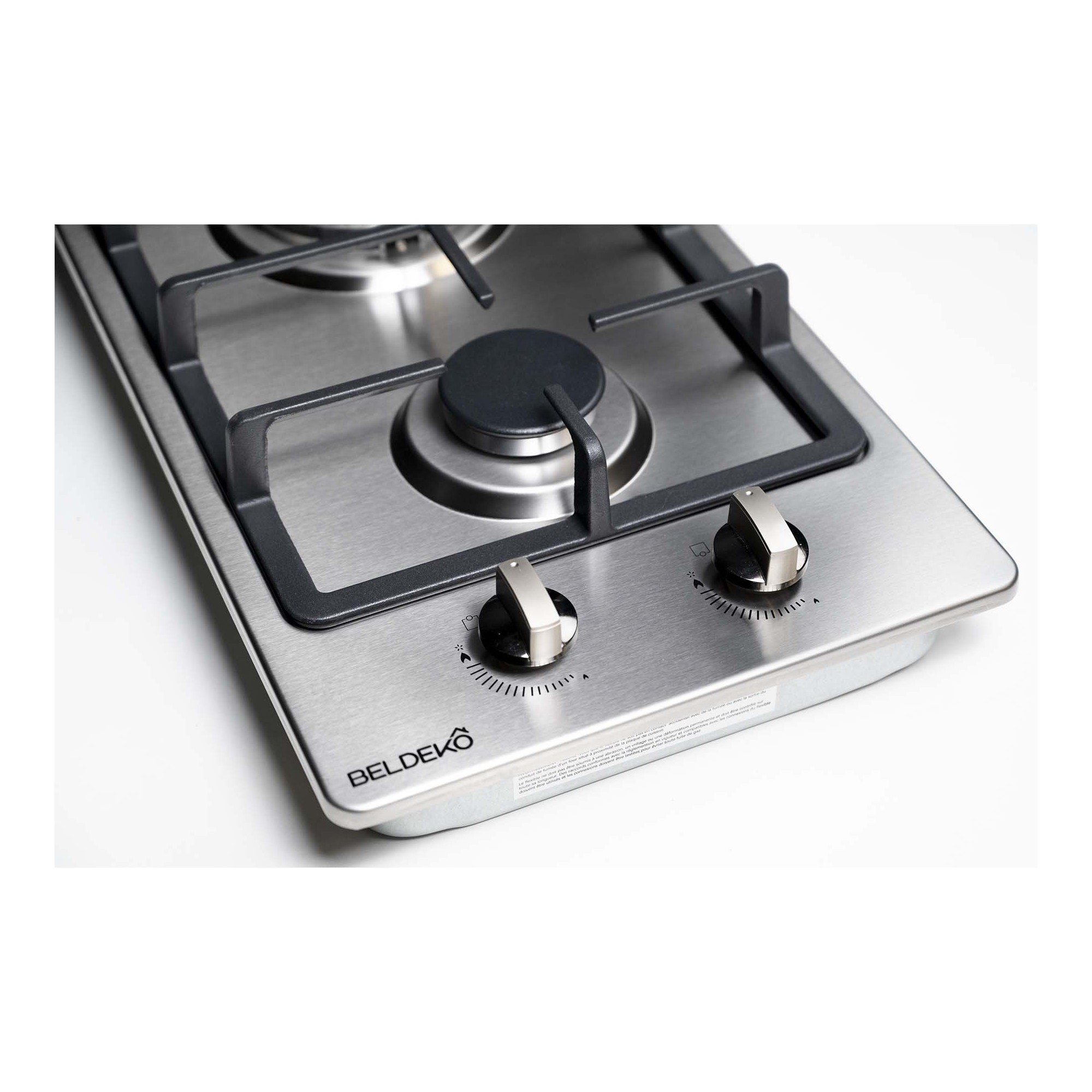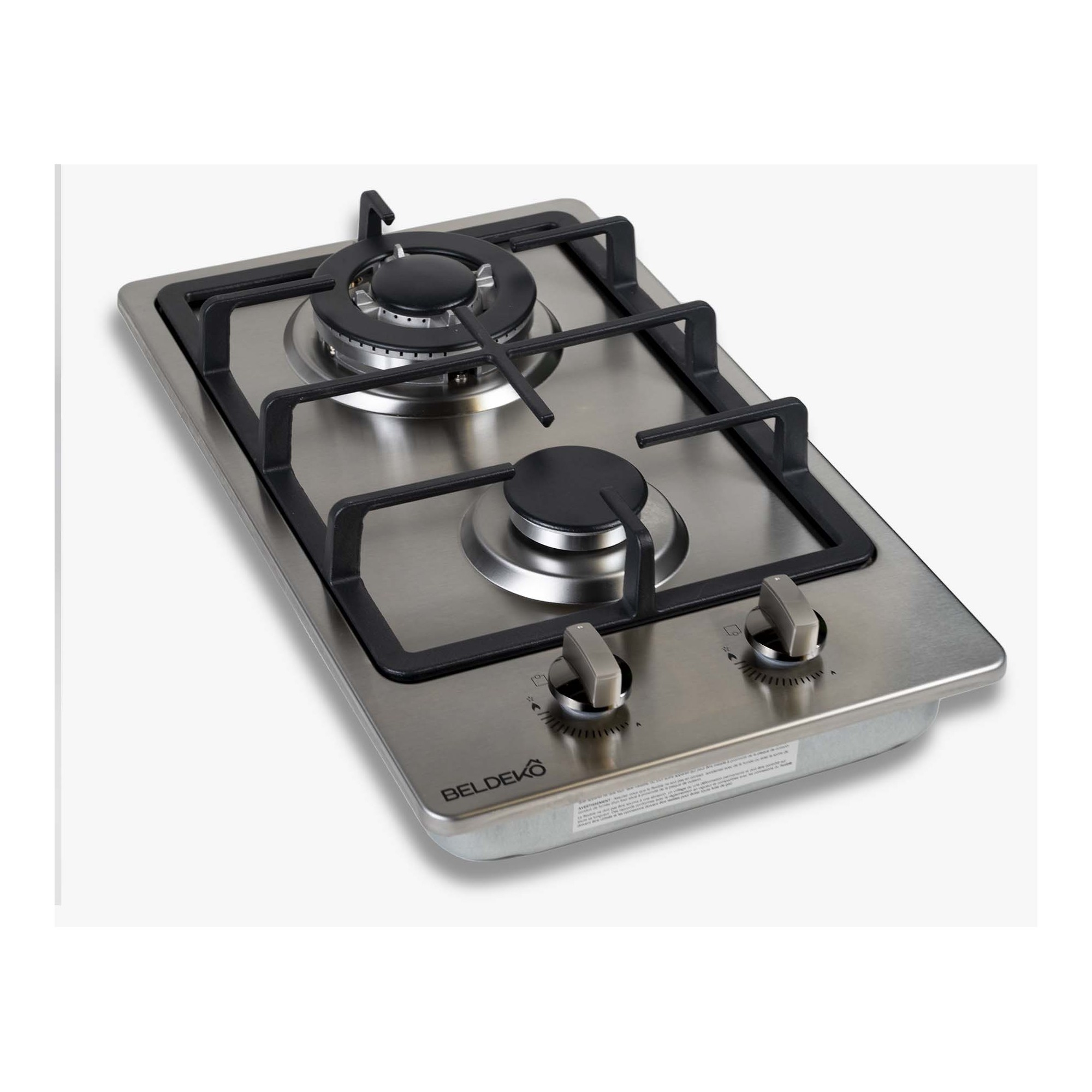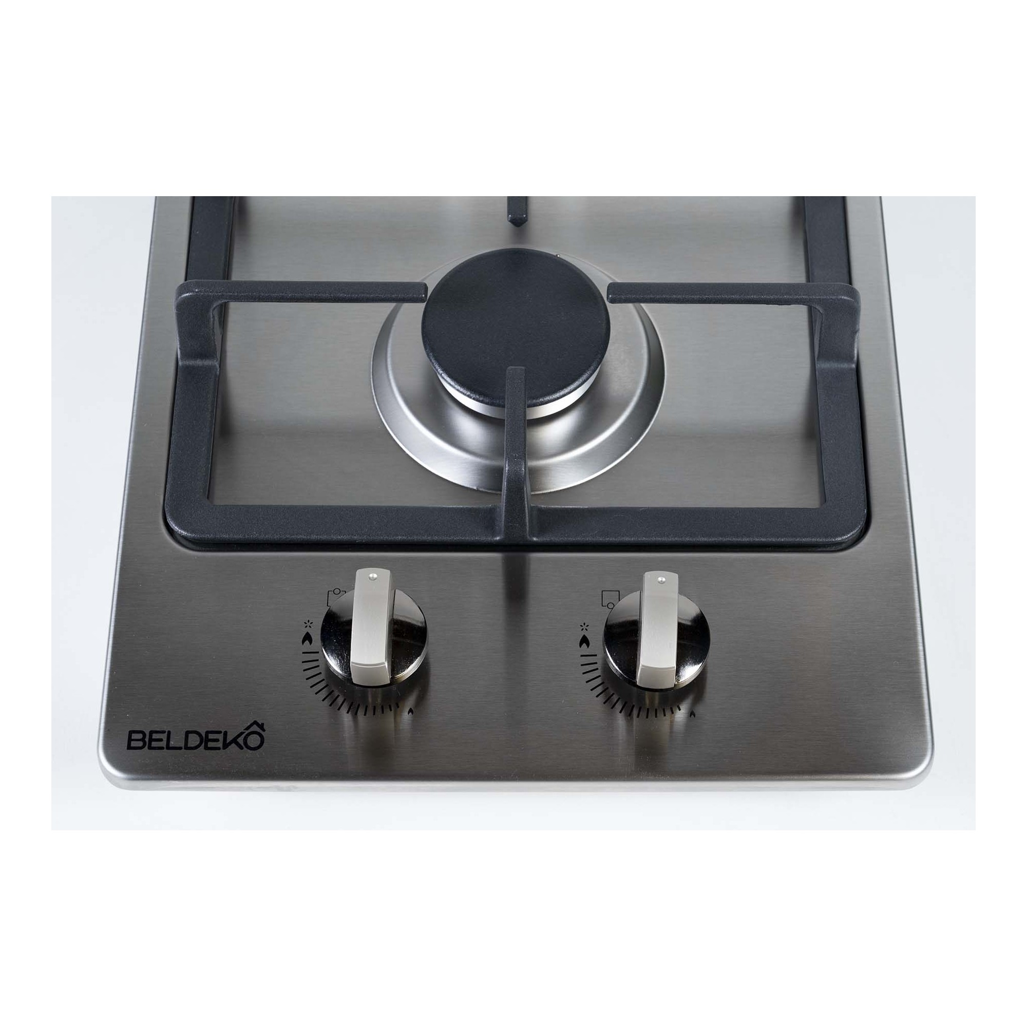 Domino gaz encastrable Livré en gaz naturel, injecteurs gaz butane fournisCordon de raccordement (1 mètre) et prise électrique fournisRaccord pour tuyau souple fourniSécurité thermocouple : système permettant l'arrêt automatique de l'arrivée du gaz lorsque la flamme s'éteint accidentellement. FICHE TECHNIQUEInformationsgénéralesRéférenceTG2I-124MarqueBeldekoCatégorie du produitDomino GazColorisInoxOrigineFabriqué en RPCMatièreSurface : InoxGrille et chapeaux de brûleurs : fonteCaractéristiquesDimensions du domino (L x P)31 x 51 x 9 cmDimensions d'encastrement (L x P x H)28 x 48 x 5,5 cmPoids5,6 kgType de foyerGazNombre de foyer2PuissanceAV brûleur auxiliaire 1000 WattsAR brûleur rapide 3000 WattsType des commandesManettes (métal coloris gris silver)Allumage électroniqueOui (1 main)"Les plus"Sécurité thermocoupleGarantieDurée2 ansPrise en chargePièces, main d'œuvre et déplacementsType de garantieConstructeur