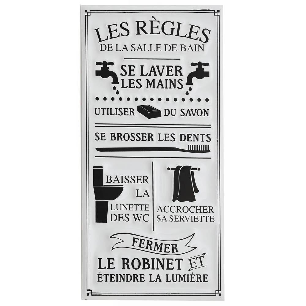 | Libellé | Plaque décorative en métal Règles de la salle de bain 30x60 cm |