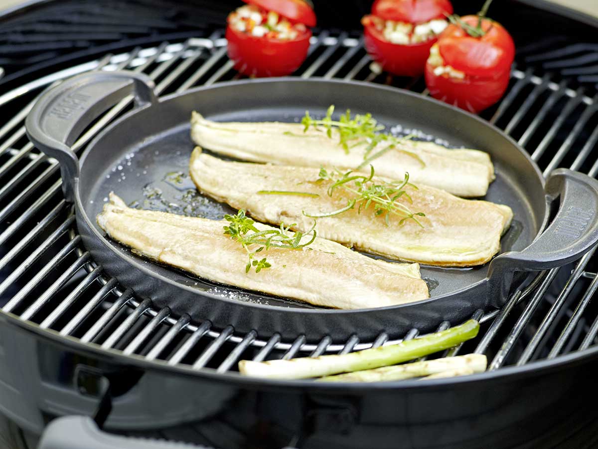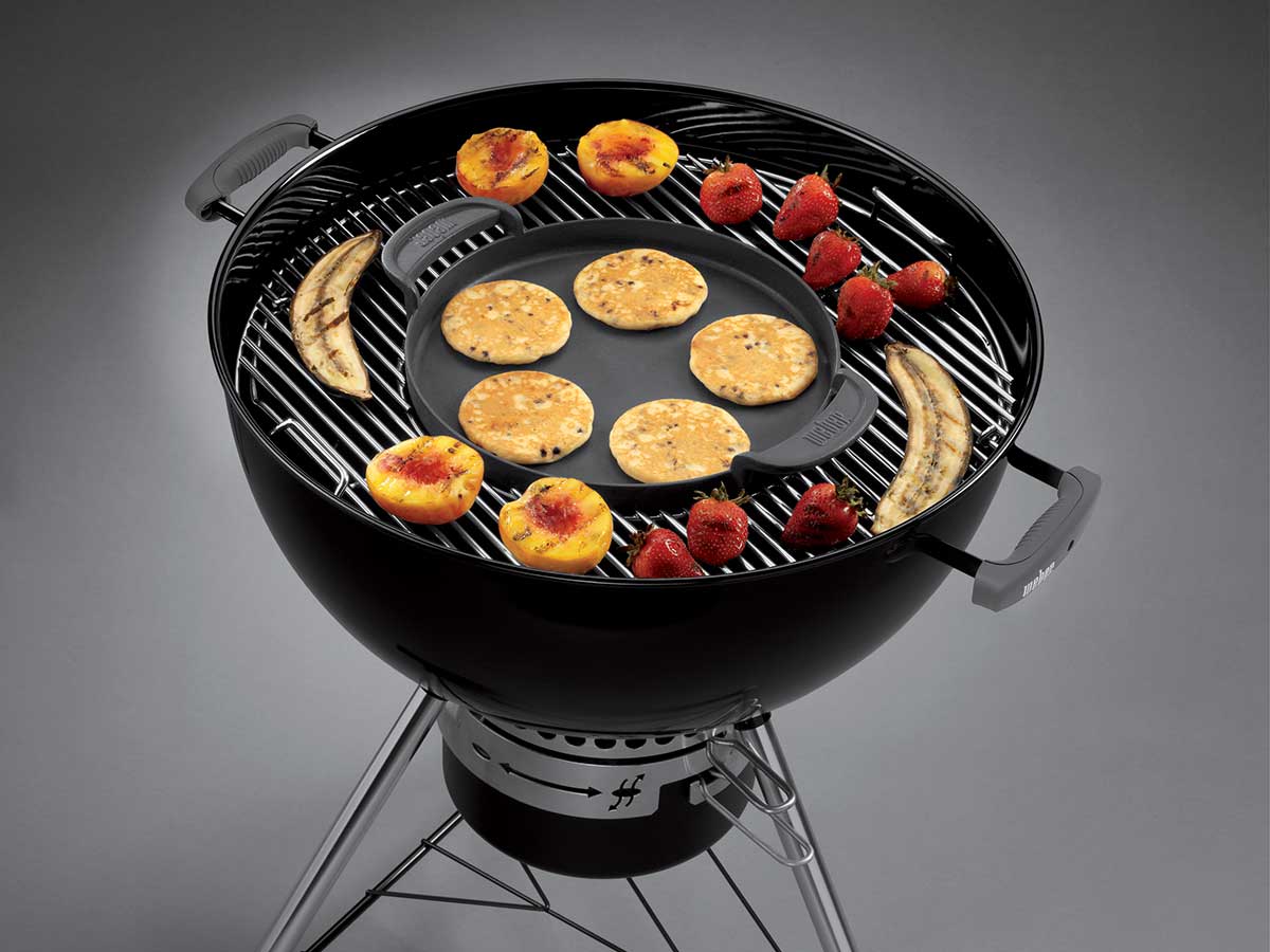 Plancha pour gourmet barbecue system Weber 7421. Parfaite pour les pancakes, les oeufs au bacon, les légumes grillés et les fruits de mer. La plancha en fonte n'attache pas et répartit la chaleur uniformément sur toute sa surface. Matière : Fonte Diamètre : 47cm Hauteur : 5cm Poids : 2.8kg Compatible avec les grilles de cuisson Gourmet BBQ System pour les barbecues à charbon Weber, les barbecues à pellets SmokeFire EX4/EX6 et les barbecues à gaz Genesis/Genesis II, Spirit et Summit. Compatible avec les grilles de cuisson WEBER CRAFTED et le kit adaptateur pour les barbecues à pellets SmokeFire EX4/EX6/EPX4/EPX6 et les barbecues à gaz Genesis 2022, Genesis et Spirit à partir de 2016.