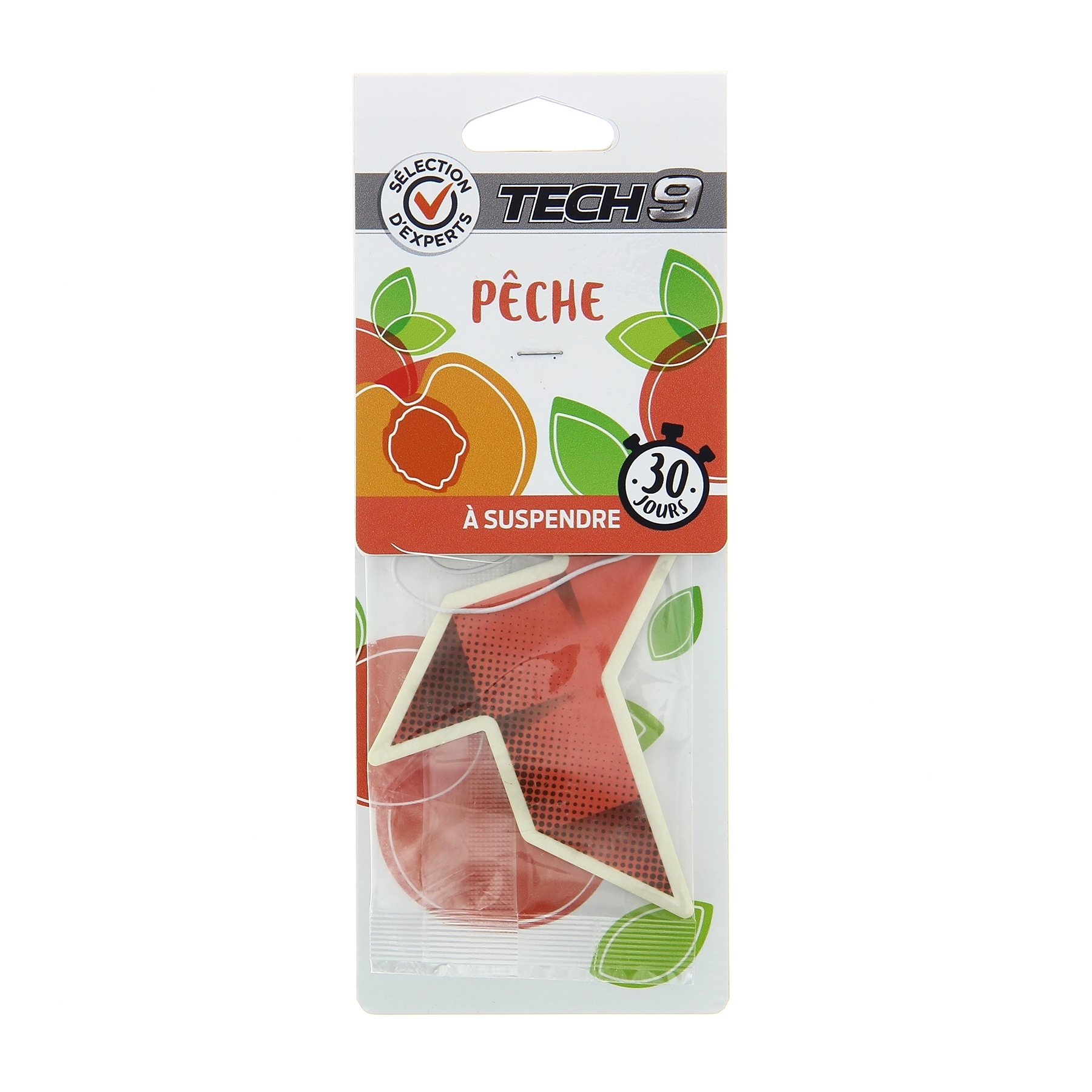 La plaquette imprégniée TECH9 diffuse un agréable parfum pêche dans votre habitacle pendant 30 jours. Elle est munie d'une petite languette pour le suspendre au rétroviseur de votre véhicule.