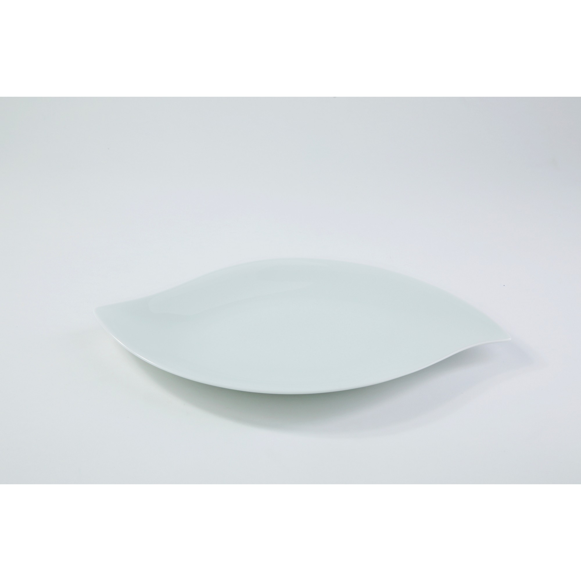 Plat de présentation - diamètre 36 cm - matière porcelaine - forme feuille - coloris blanc - compatible lave-vaisselle et micro-ondes