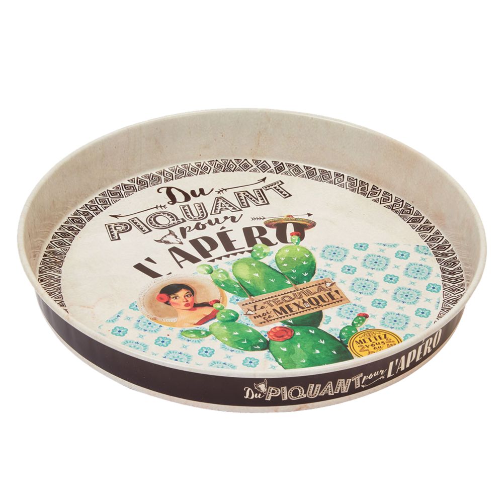 Plateau métallique rond Du piquant 34 cm Métal Dim : 34 cm