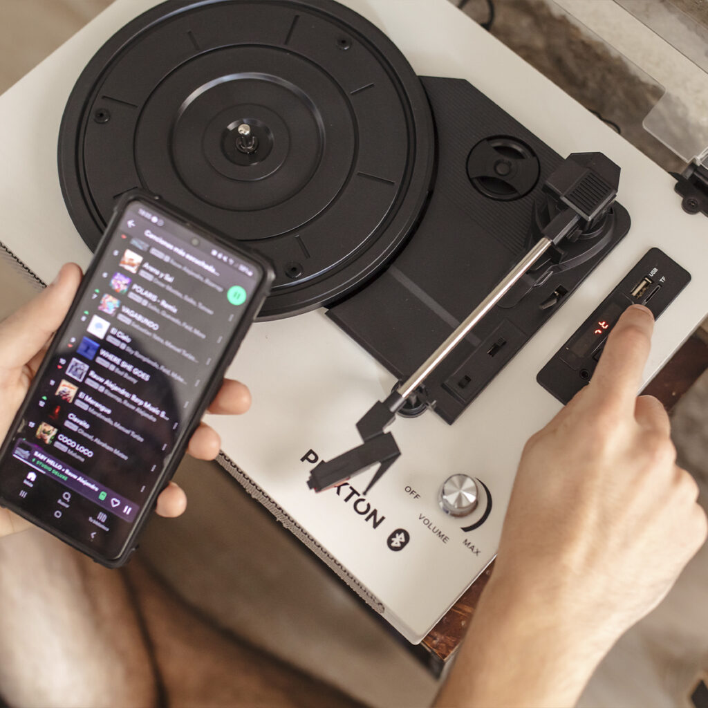 Vous pouvez numériser votre vinyle via la carte MicroSD et le port USB. De plus, si vous n'avez pas de vinyle, ne vous inquiétez pas, vous pouvez connecter votre téléphone portable via Bluetooth pour profiter de vos chansons préférées.