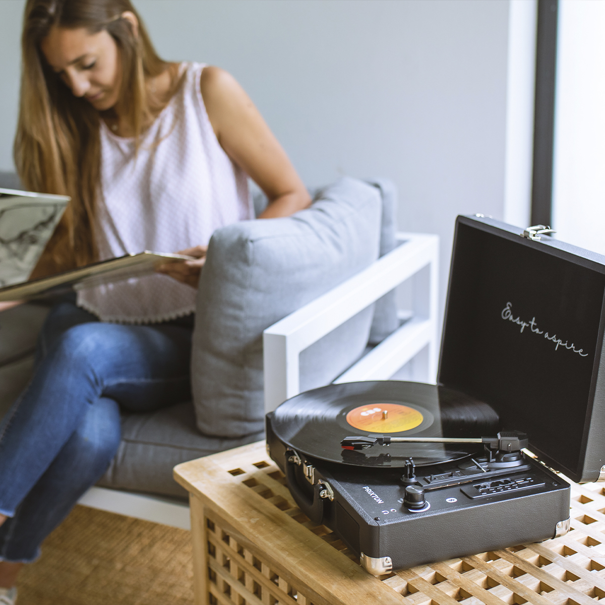 - Décorez votre maison. La platine ne servira pas uniquement de lecteur de musique. Grâce à son design et à son esthétique, vous pouvez décorer votre maison et donner une touche vintage à votre salon ou à votre chambre. De plus, grâce à sa forme de mallette, vous pouvez la transporter facilement.