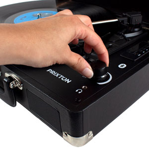 | Plus produit | Profitez de vos vinyles n'importe où avec la platine Bluetooth VC400 PRIXTON au design vintage en forme de mallette. Numérisez vos vinyles au format WAV via USB et MicroSD, écoutez de la musique en Bluetooth avec ses 3 vitesses de lecture. Transformez votre maison en un coin vintage avec cette platine polyvalente. |