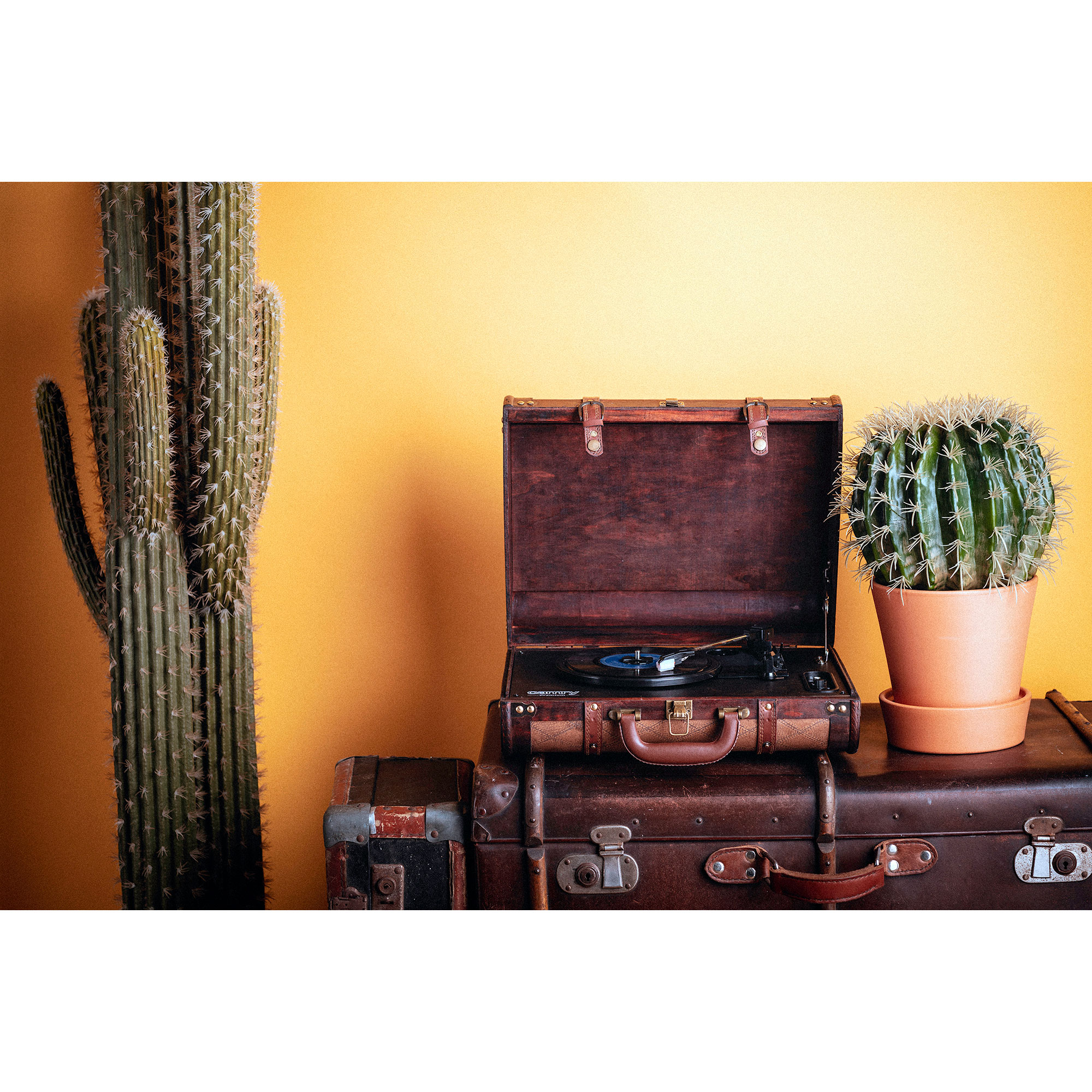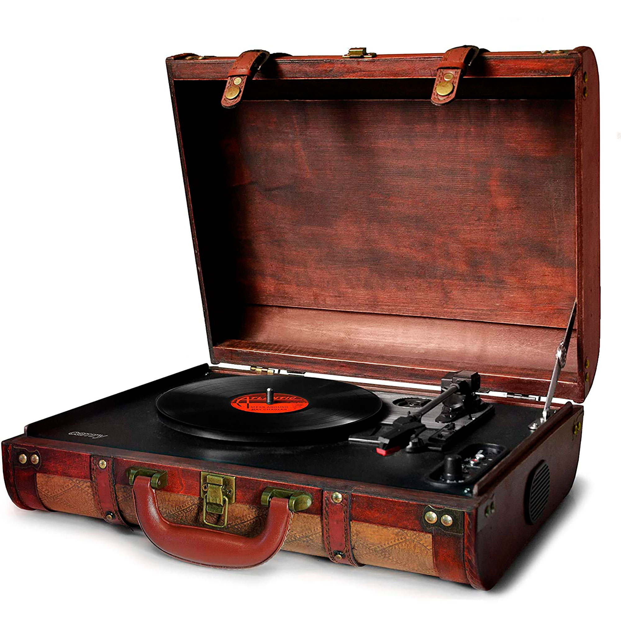- 【PORTABLE】Son design compact en forme de boîtier rend le tourne-disque facile à transporter, vous pouvez l'emporter en voyage ou changer de séjour pour emporter la musique avec vous dans un confort total.