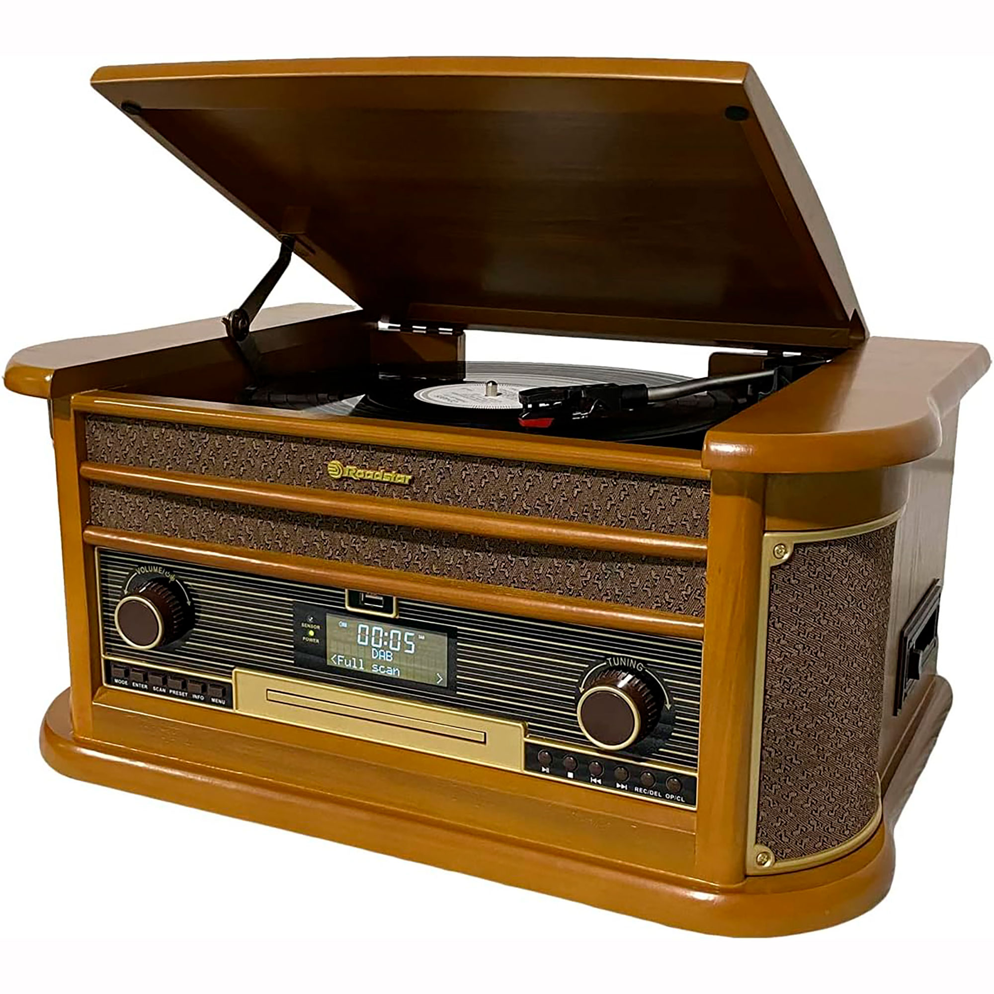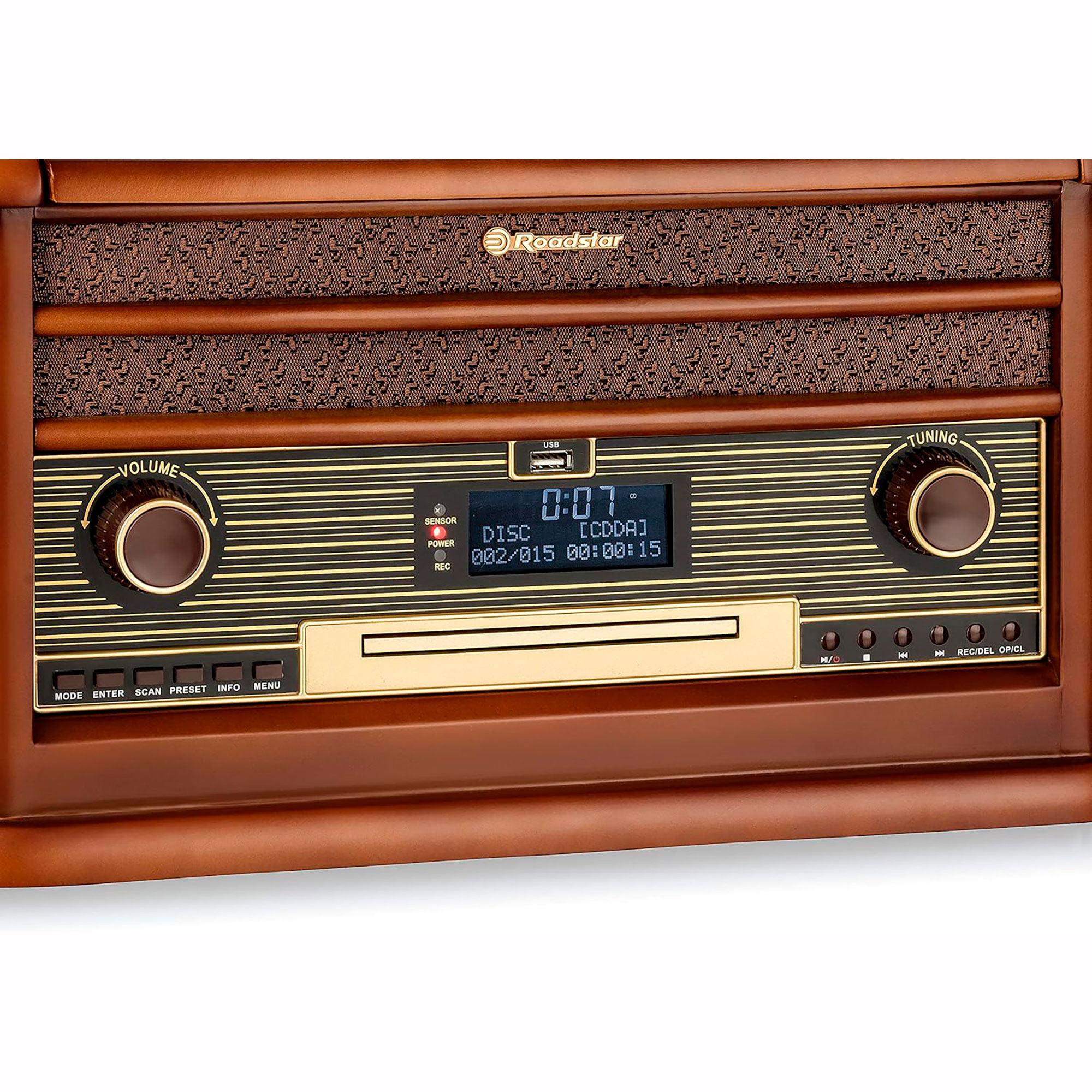 Platine Vinyle Vintage Radio DAB/DAB+/FM, Lecteur CD-MP3 Cassette, Bluetooth USB Bois RoadstarHIF-1996D+