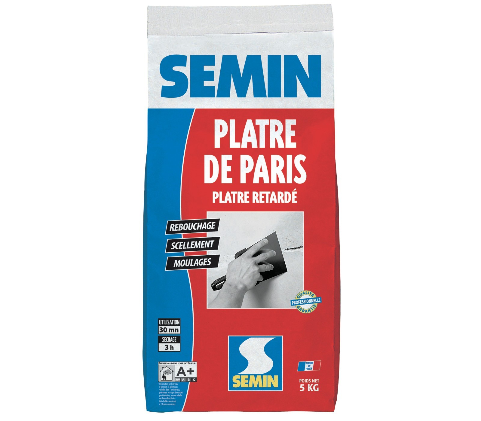 | Libellé | Plâtre de Paris pour moulages, scellements et rebouchage Semin - intérieur - sac de 5 k |