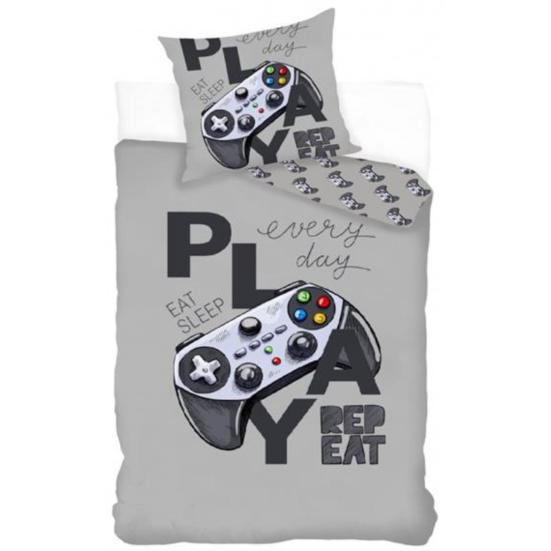 Play Déco - Parure de lit coton Enfant Gamer Manette de jeu - Housse de Couette Une Taie