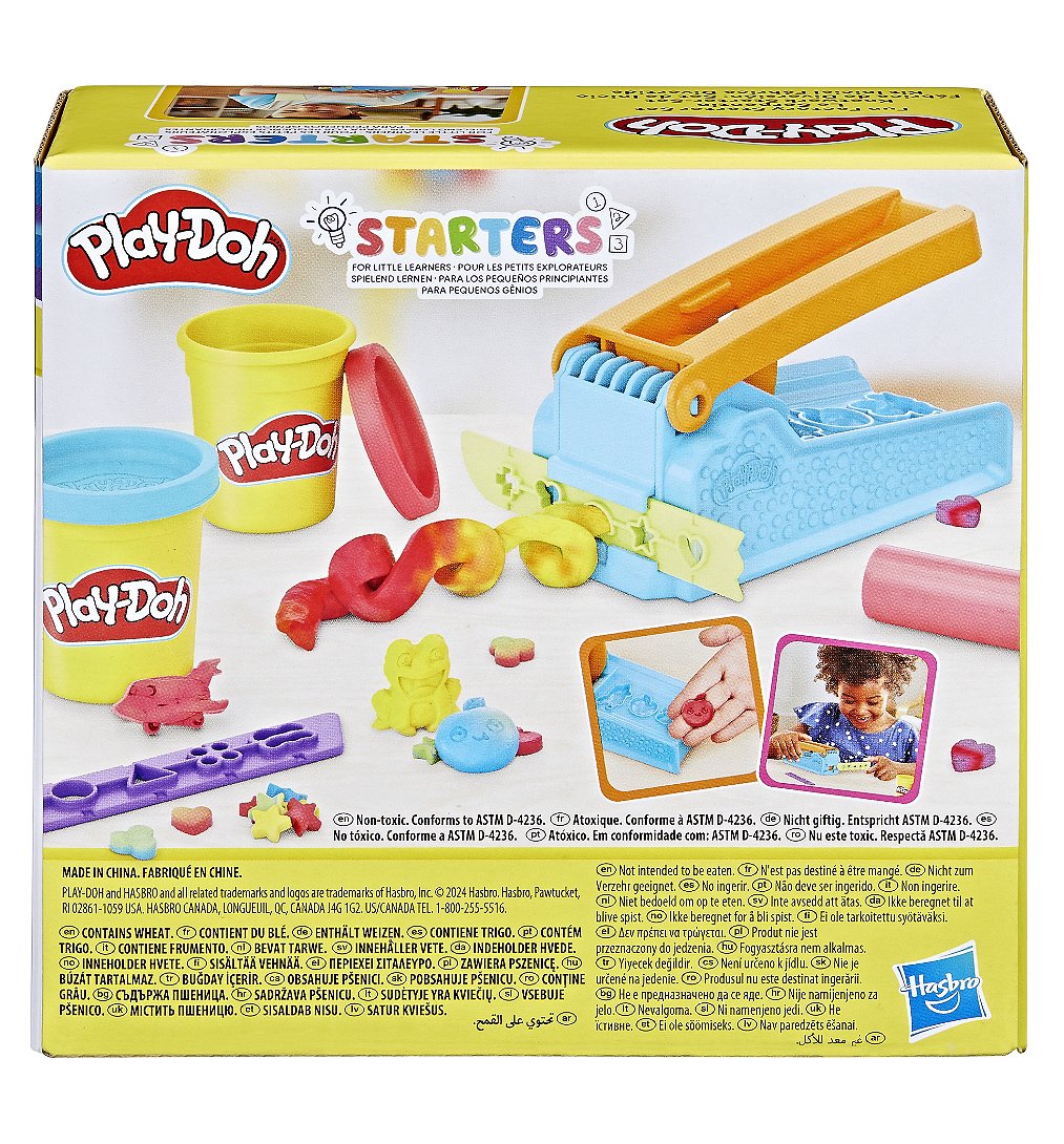 Plus produit LES PREMIERS JOUETS PLAY-DOH : Le Serpentin est un coffret classique de Play-Doh et cette version est parfaite pour les enfants qui commencent à écraser, à extruder et à créer les choses qu\'ils imaginent 10 FORMES AMUSANTES À EXTRUDER : Il suffit de placer une des deux filières sur l\'avant du jouet pour sélectionner une forme. Les filières peuvent se ranger sur le jouet Le Serpentin pour éviter de les perdre POUR LES PETITS EXPLORATEURS : Quand les enfants sont tout-petits et ont soif d\'apprendre, les jouets comme ce coffret Play-Doh peuvent les encourager à développer leur motricité fine et leur créativité 3 COULEURS PLAY-DOH : Inclut des pots de 56 g de pâte à modeler rouge, bleue et jaune pour commencer à créer. Contient du blé COUTEAU ET ROULEAU : Il y a deux accessoires Play-Doh pour aider les enfants à créer