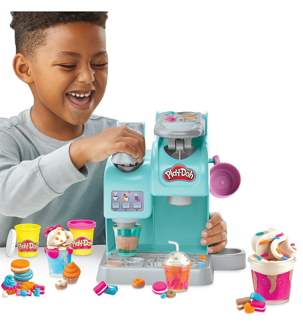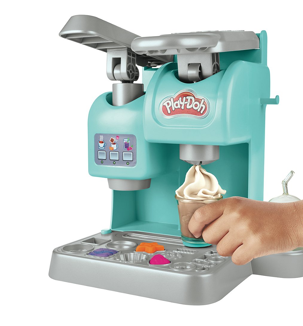 | Plus produit | JOUER AU BARISTA : Les enfants donnent libre cours à leur créativité dans leur café. Ils peuvent créer des chocolats chauds Play-Doh, ou encore des smoothies colorés à l\'aide de cette machine à café jouet ON REMPLIT, ON FAIT TOURNER ET ON GARNIT : on remplit une tasse au poste de remplissage, puis on la regarde pivoter et glisser vers le poste des garnitures, où de la pâte Play-Doh ondulée permet de recréer l\'effet de la chantilly DES PÂTISSERIES FACTICES À CRÉER : Les jeunes baristas peuvent entre autres créer des cookies, des beignets et des petits gâteaux Play-Doh. On peut ensuite les exposer sur le présentoir qui inclut aussi des moules amovibles pour encore plus de gourmandises À EMPORTER : Ce jouet culinaire Play-Doh inclut 2 tasses, 4 gobelets transparents et 2 couvercles transparents pour les boissons chaudes et les boissons frappées. On peut commander ses boissons factices à emporter avec la boîte de transport 8 POTS ET 20 ACCESSOIRES : Ce jouet culinaire créatif inclut des pots de 56 g de pâte à modeler Play-Doh classique. Il y a de la pâte rose, marron et blanche, ainsi que des pots de pâte bicolore, dont une pâte violette et bleue (contient du blé) |