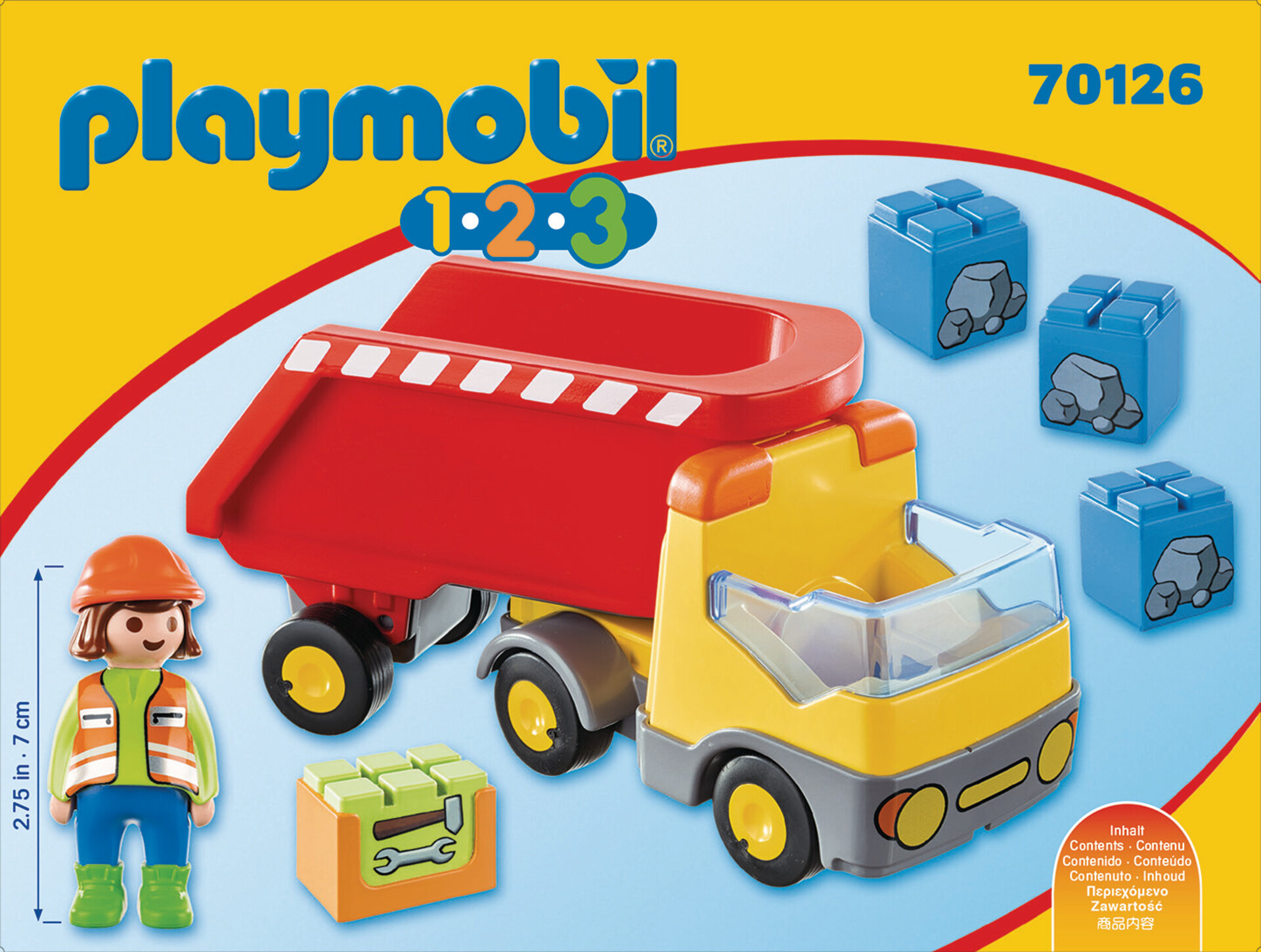 | Libellé | PLAYMOBIL 1.2.3 70126 Camion benne - avec un personnage, des pierres, des outils et une benne - Mes premiers Playmobil - Apprendre en s'amusant - Pou |