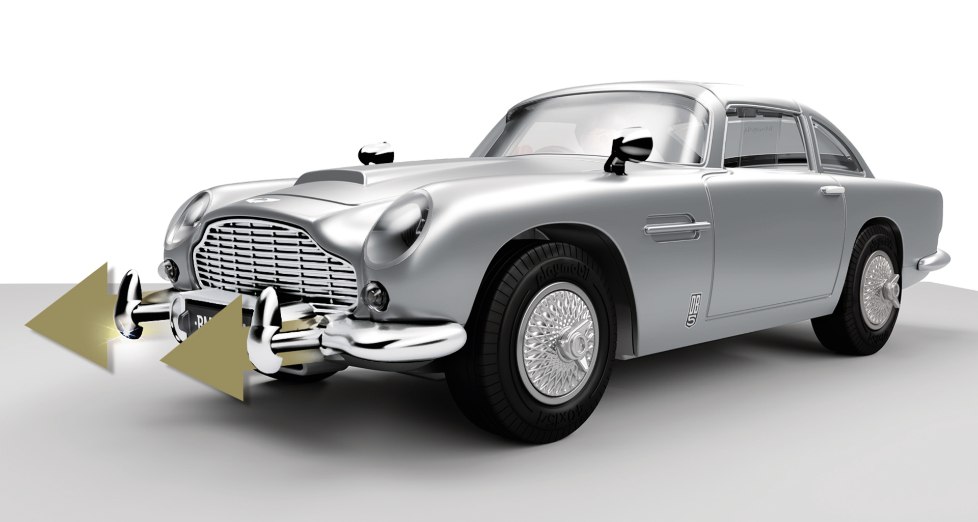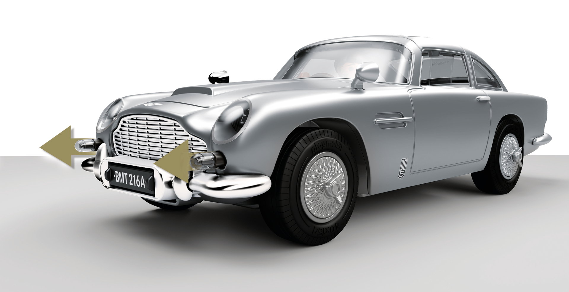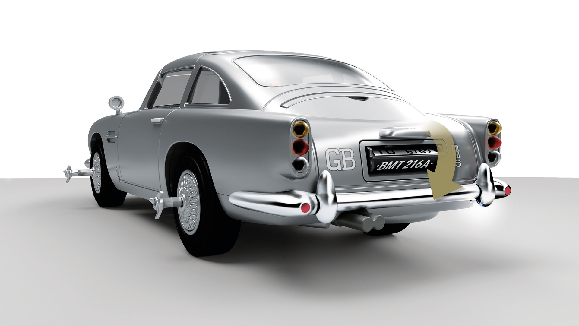 Son nom est Bond, James Bond. L'Aston Martin DB5 de l'espion le plus célèbre du monde dans le film Goldfinger (1964), avec des gadgets d'origine comme le siège éjectable du passager et les plaques dimmatriculation rotatives et transformables. Avec James Bond, Auric Goldfinger, Oddjob et un homme de main.