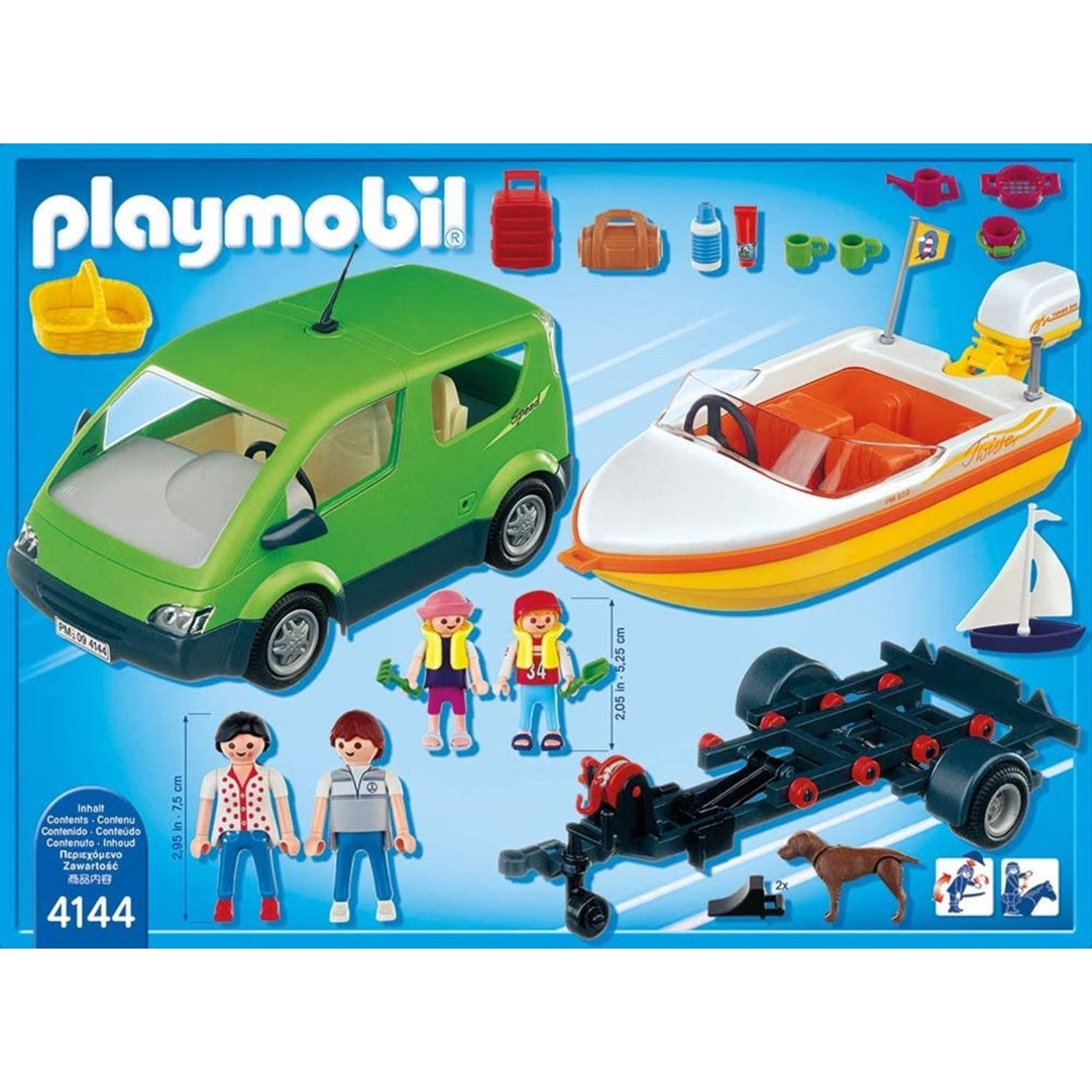 PLAYMOBIL 4144 City Life - Voiture familiale avec remorque porte-bateaux - - Voiture familiale avec remorque porte-bateaux invite les enfants à partir en vacances avec la famille PLAYMOBIL. Tout est prêt pour le grand départ avec ce set comprenant un véhicule, un bateau, une remorque, 4 figurines, 1 chien, etc. - - Détails:- 10 pièces - À partir de : 4 ans