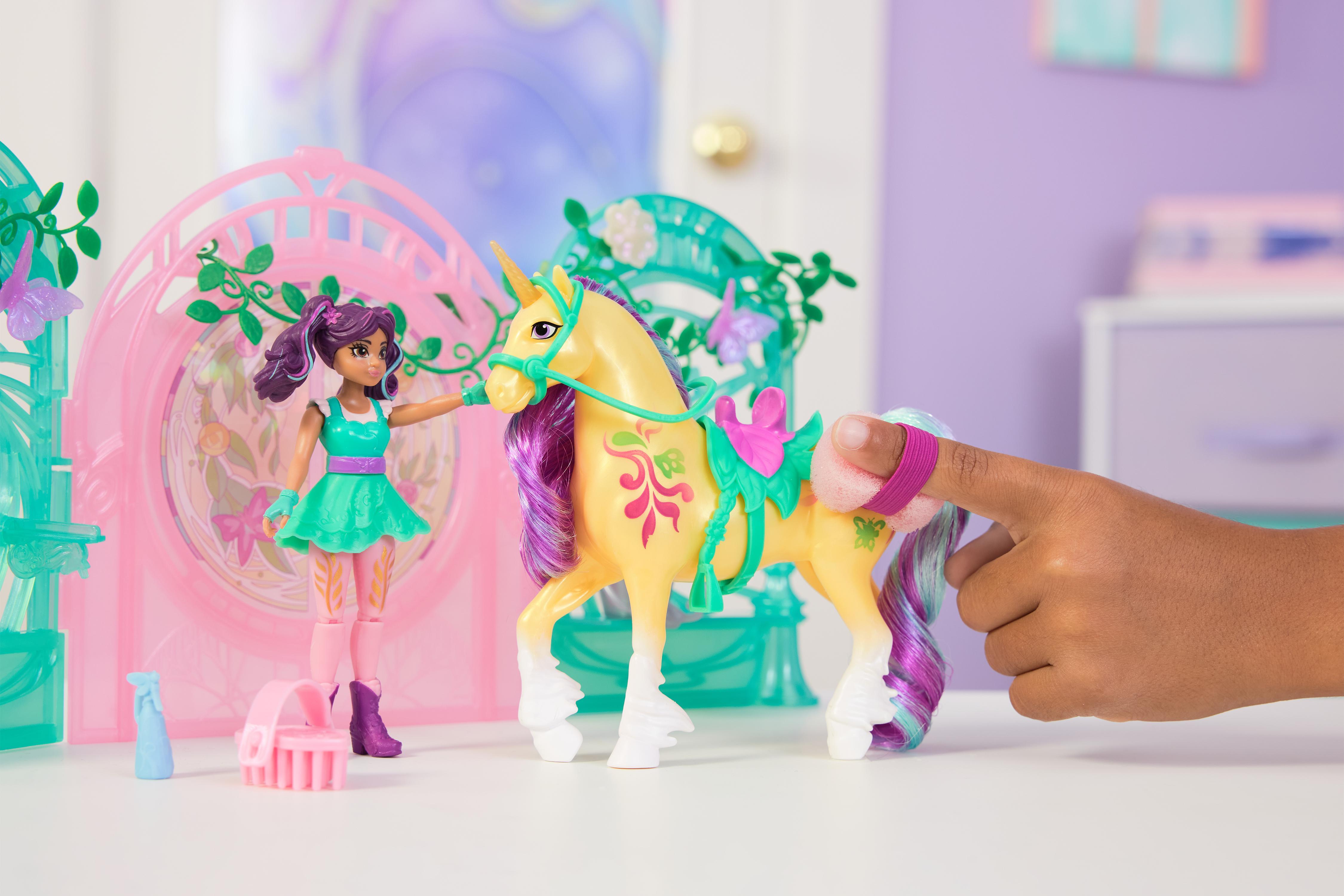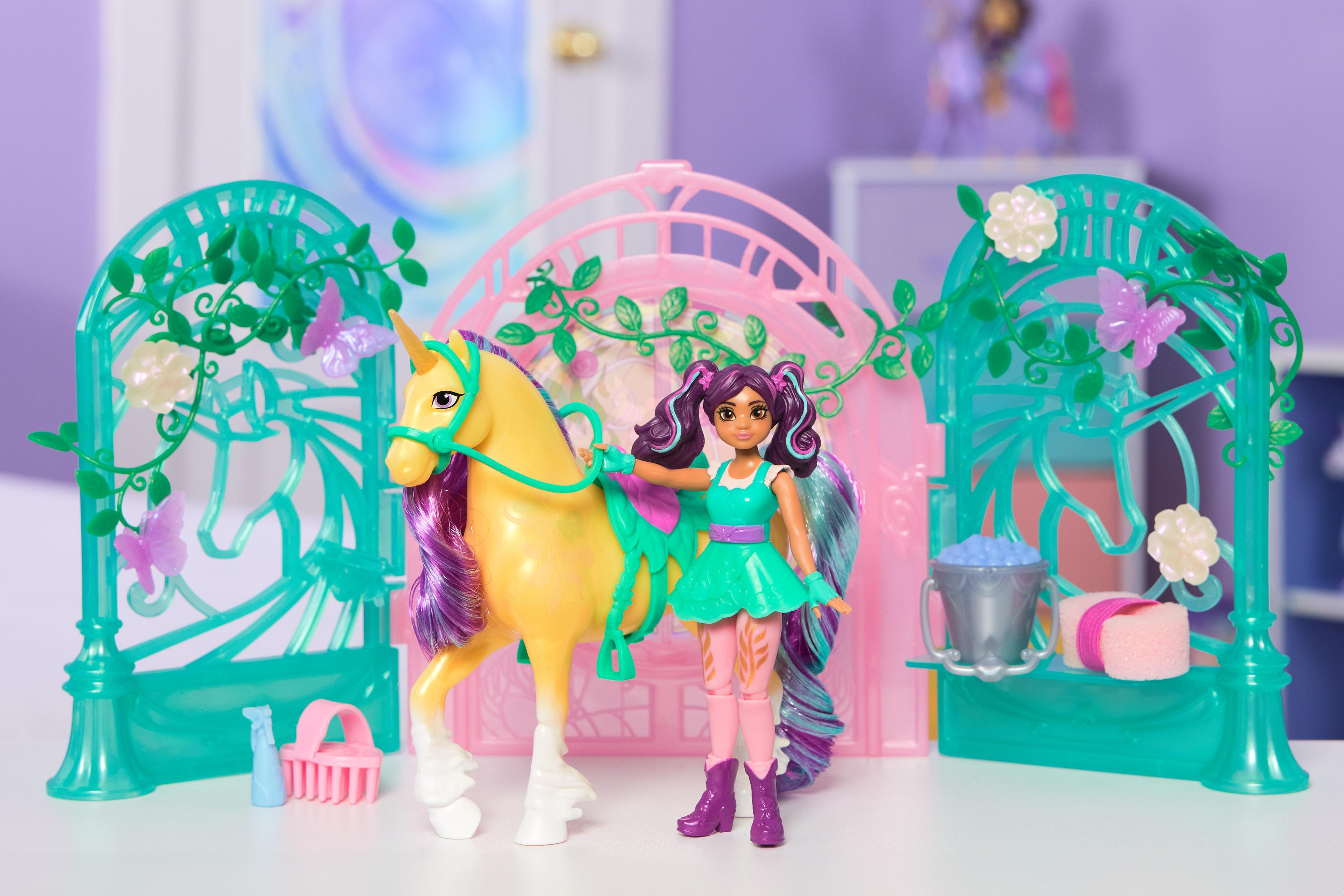 L'écurie de Leaf comme dans la série L'Ecole des Licornes. Révèle les pouvoirs magiques de ta licorne en la brossant avec de l'eau. 1 poupée Ava et 1 licorne Leaf incluses. Dès 4 ans.