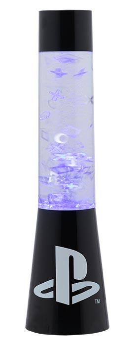 Cette lampe est un accessoire indispensable pour les fans de la console Playstation. Elle est constituée d'un socle noir avec le logo Playstation, et d'un tube transparent rempli de liquide et de paillettes argentées. Quand vous allumez la lampe, le liquide s'agite et fait flotter les icônes des touches de la manette Playstation (triangle, carré, rond, croix) en aluminium. La lampe émet une lumière bleue relaxante, qui donne une touche de style et de fun à votre intérieur. Elle se branche avec un câble USB (non inclus) ou 3 piles AAA (non incluses). Elle mesure 33 cm de hauteur et est un produit officiel sous licence Playstation.