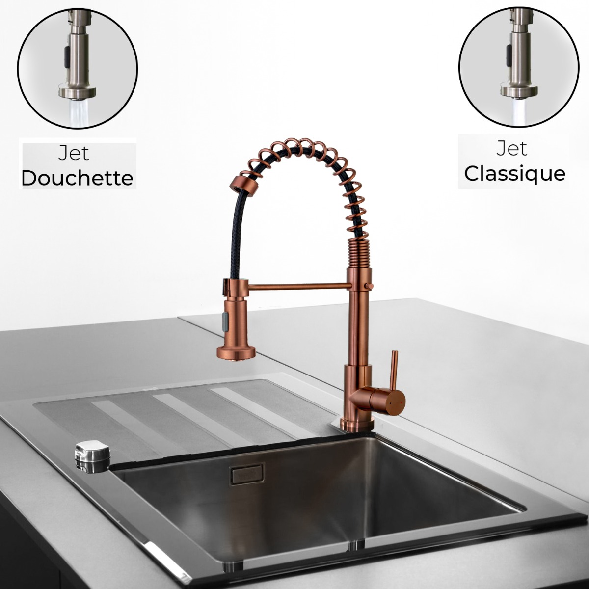 | Libellé | Plimo mitigeur évier à douchette mobile cuivre brossé |