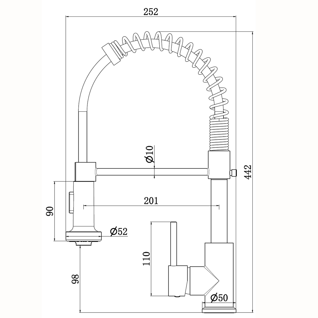 - Bec mobile avec douchette non-extractible.