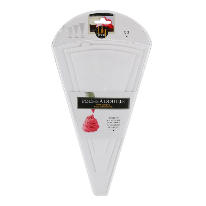 Réalisez de jolies décorations accompagné de cet ensemble de 3 poches à douilles de 3 tailles différentes. Vous aurez de quoi réaliser différentes préparations en un seul geste et rivaliserez avec les plus grands professionnels de la pâtisserie ! Pratique, nettoyez-les puis réutilisez-les.