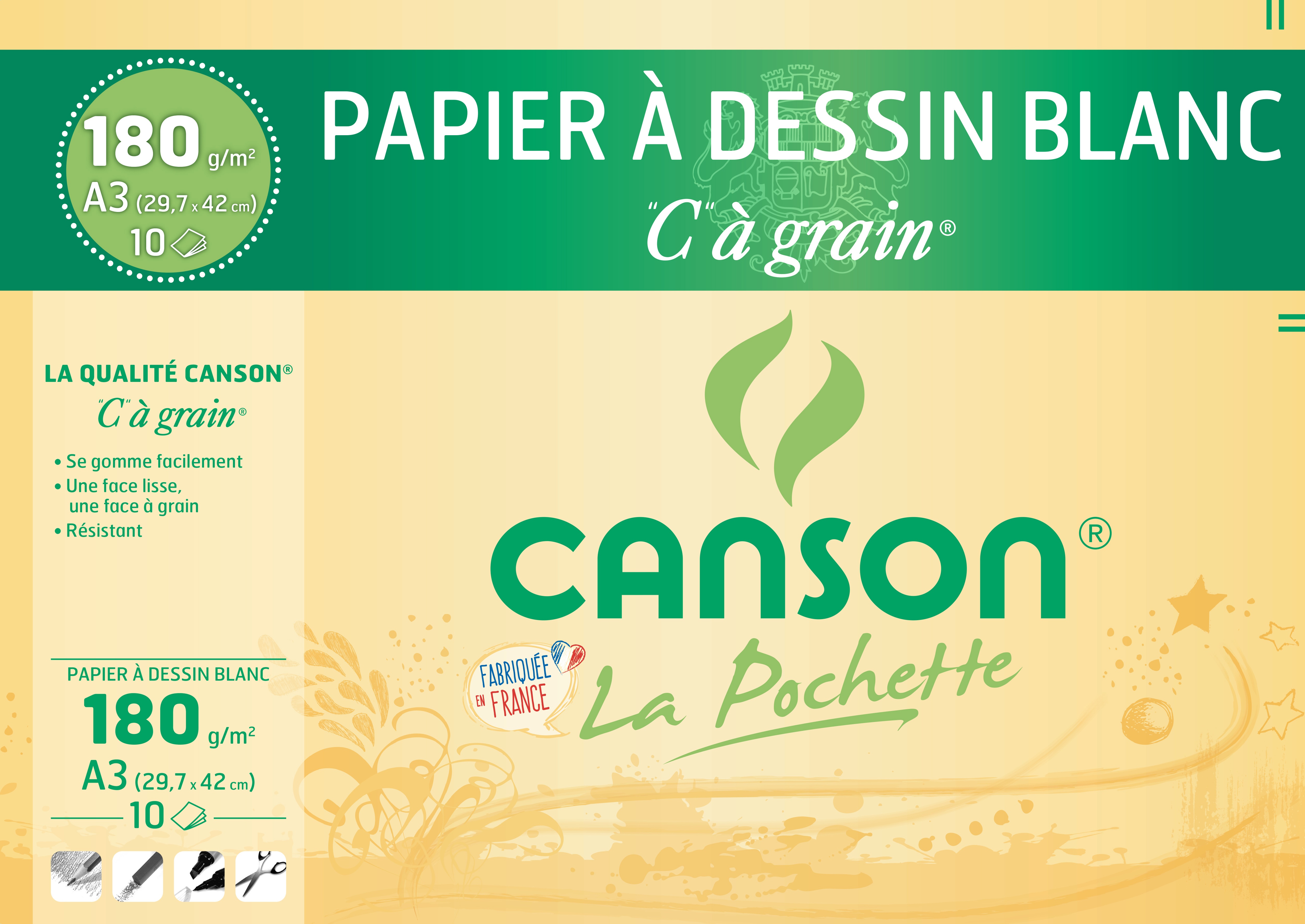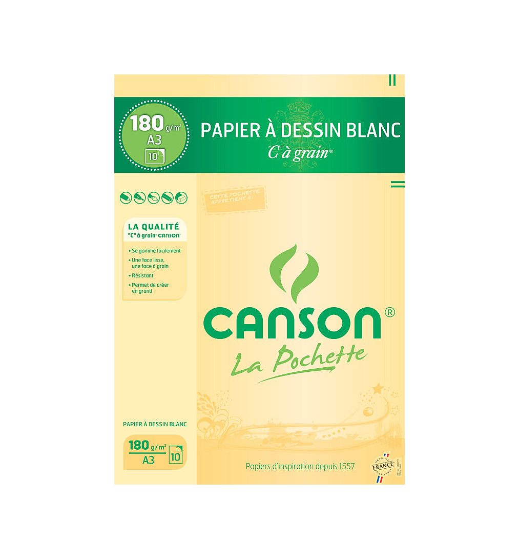 Pochette 10 feuilles c à grain® Canson A3 180g/m² blanc