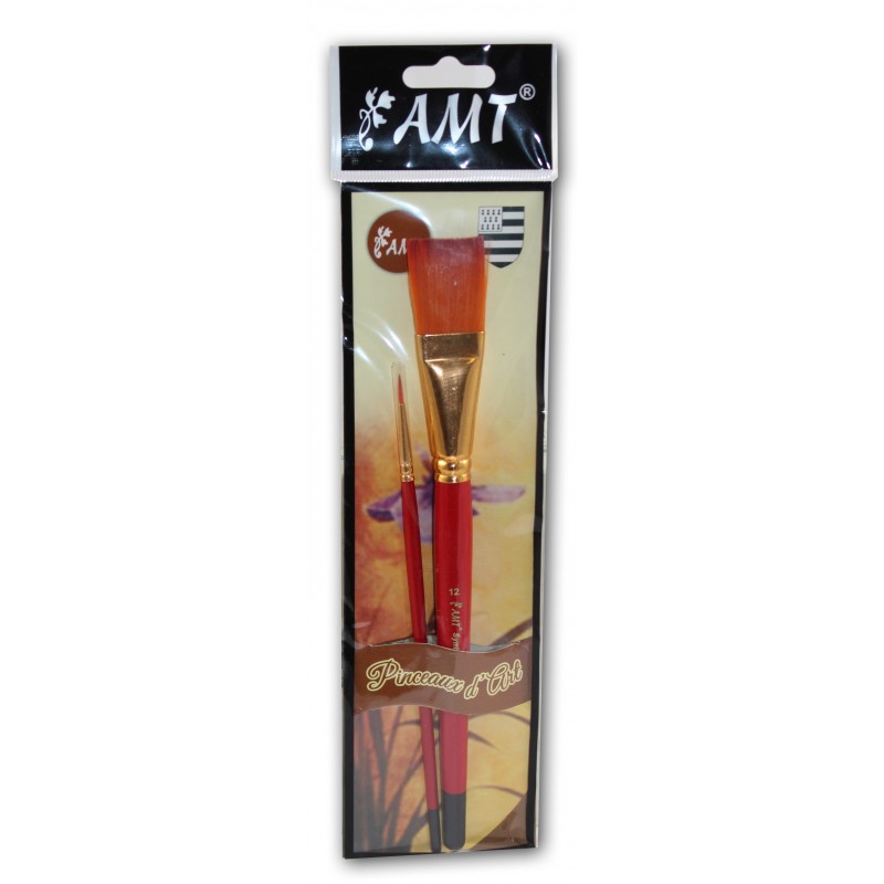 Pochette de 2 pinceaux d'art (1 pinceau rond + 1 pinceau plat)