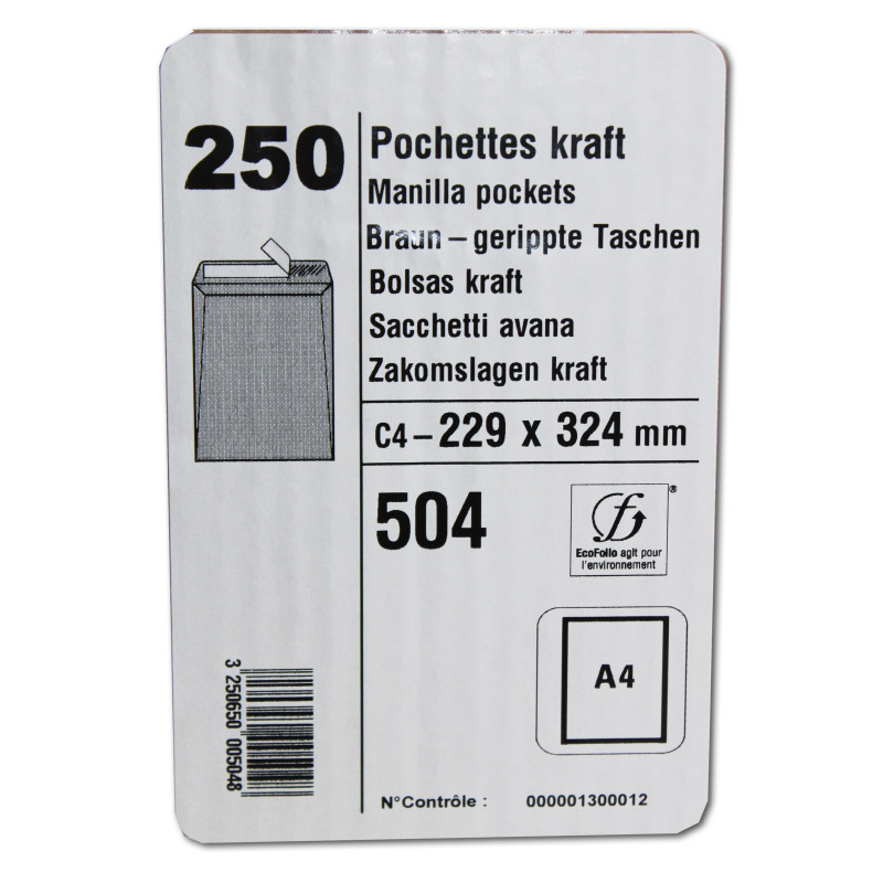 | Libellé | Pochettes d'expédition ECO C4 kraft brun 90 g/m2 250 pièces |