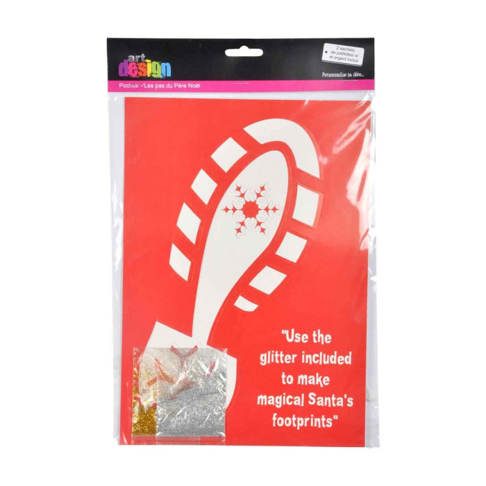 | Libellé | Pochoir & Paillettes "Pas du Père Noël" Rouge avec 2 Sachets de Paillettes Or & Argent |