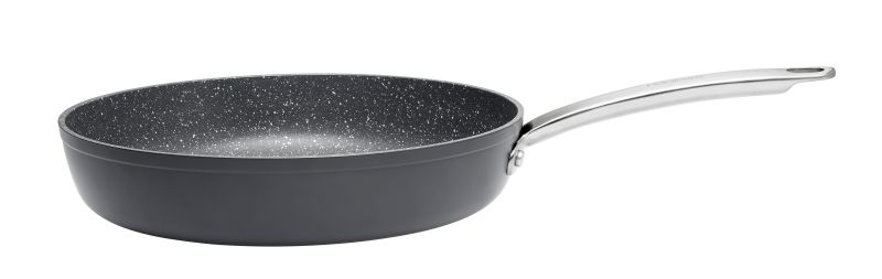 Poêle en aluminium - ø 28cm - tous feux dont induction - revêtement intérieur anti-adhésif effet pierre Téflon Select - couleur extérieure grise foncée - poignée design en inox brossé - fond profond pour cuisiner au quotidien