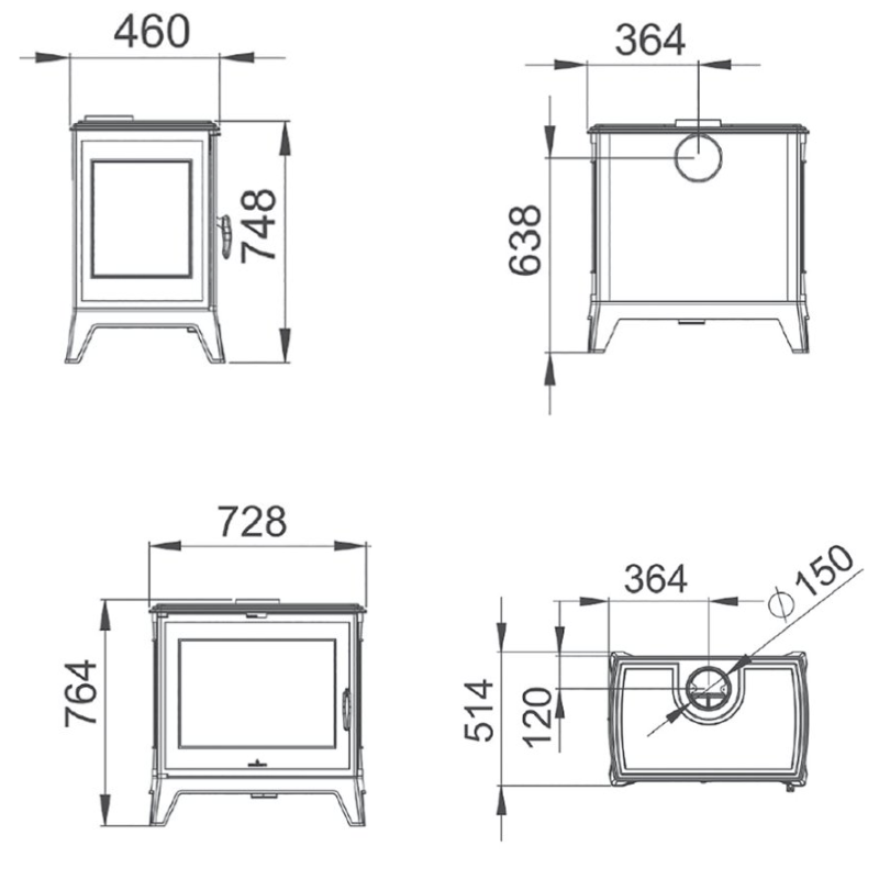 - Sortie des fumées par le dessus (diamètre 150), gain de place assuré